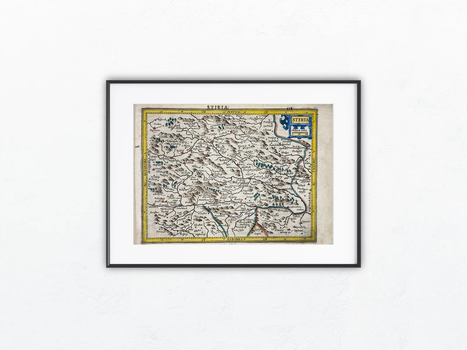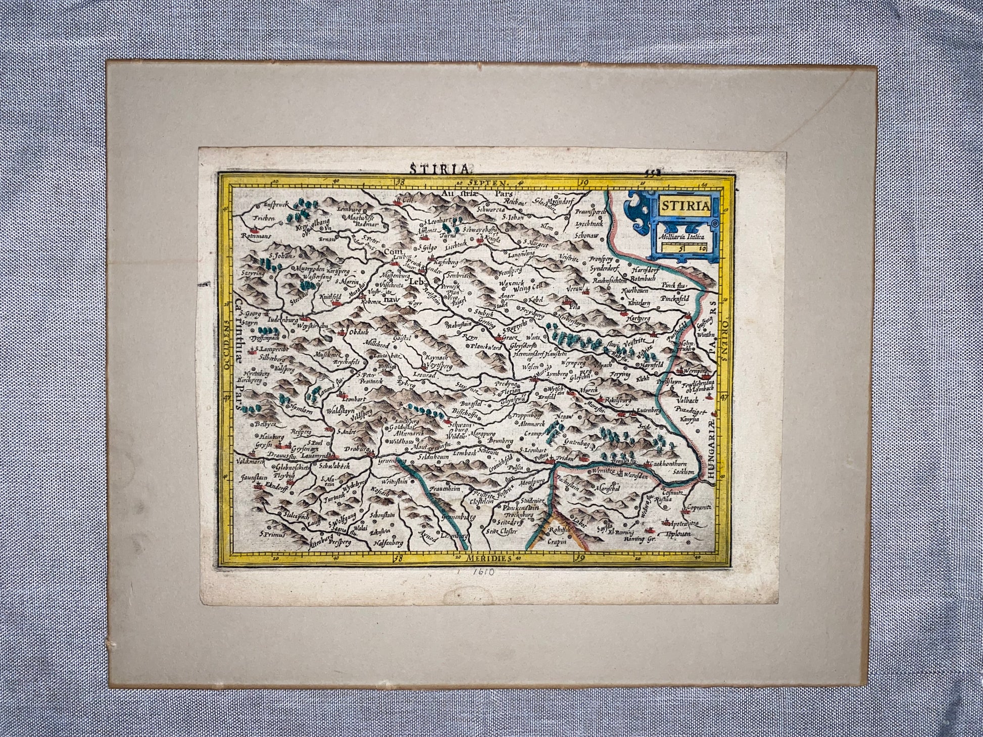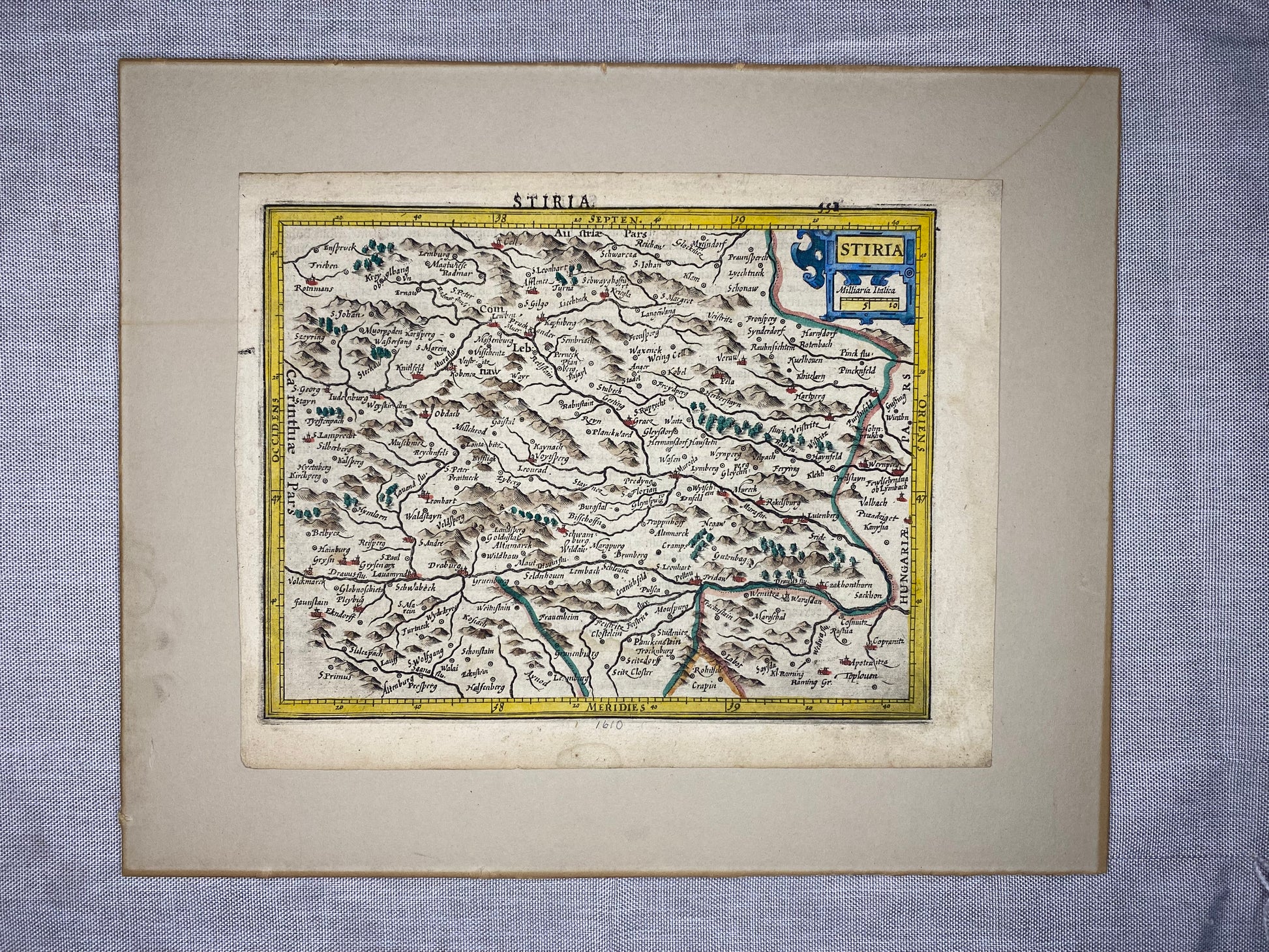 1610 Original Kupferstichkarte Stiria | Steiermark Landkarte koloriert | Kartografie Styria