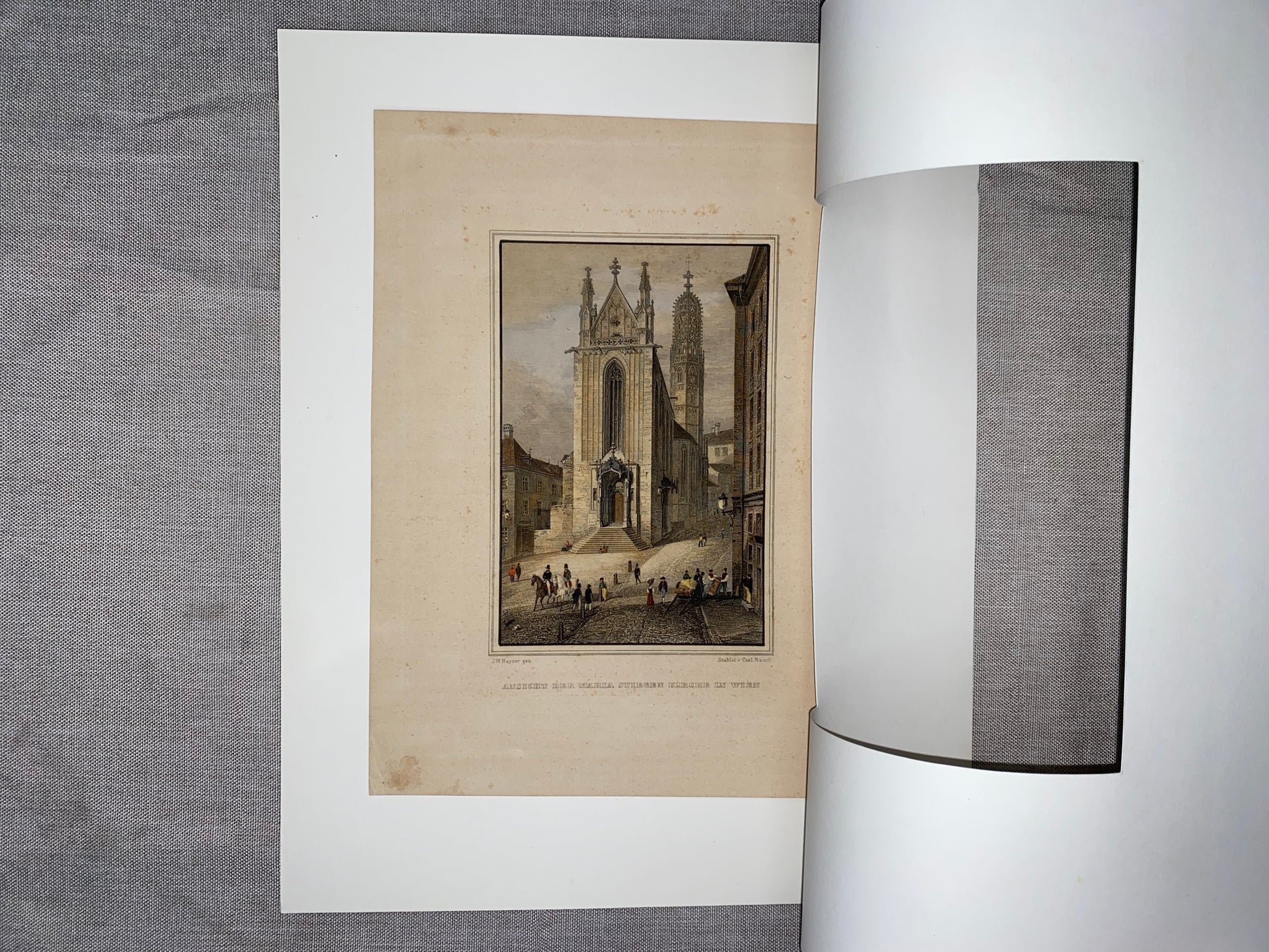 Ein charmantes Sammlerstück – ideal für Liebhaber historischer Wien-Ansichten, sakraler Baukunst und dekorativer Altgrafik.