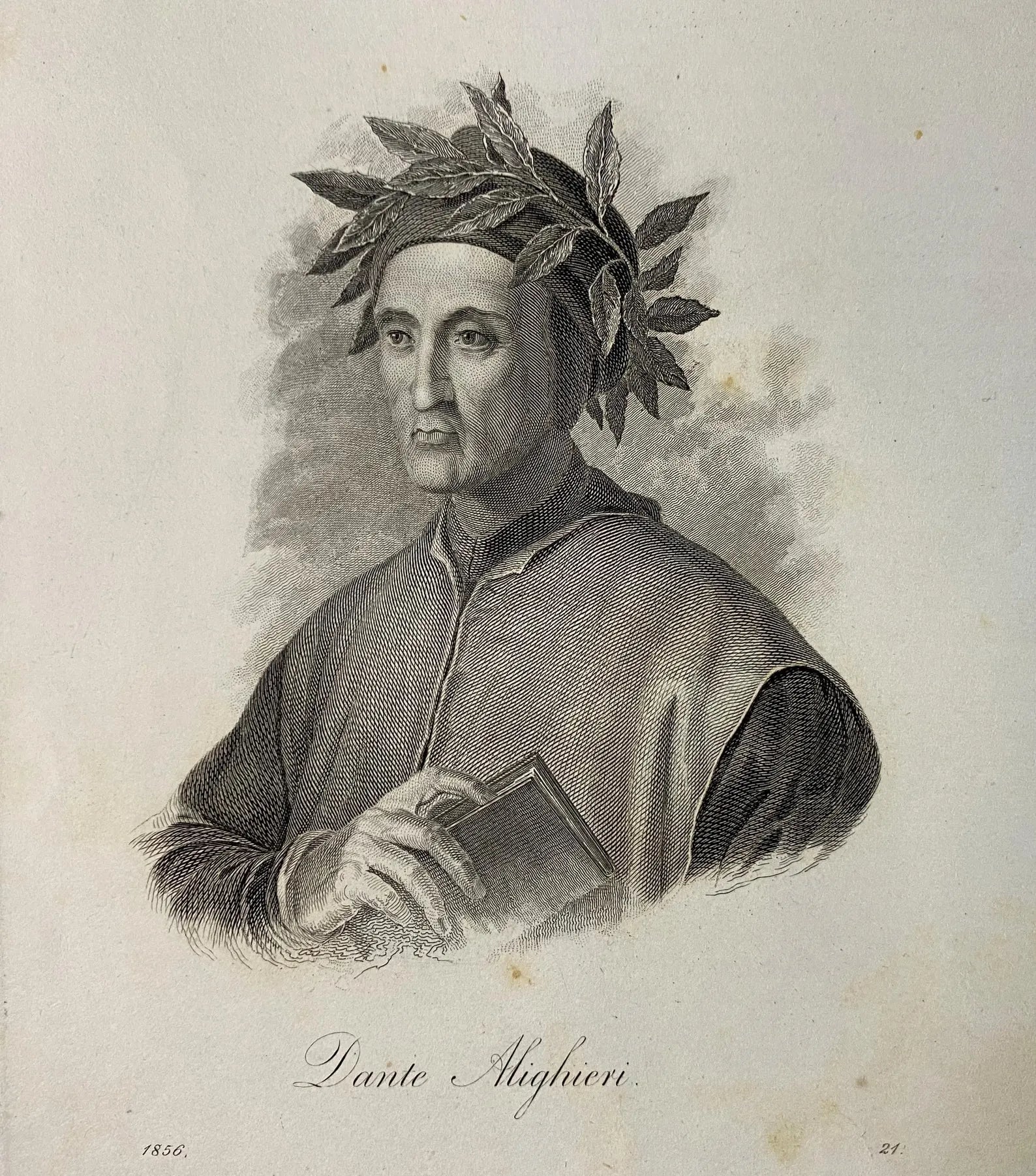 1856 Dante Alighieri Original Stahlstich | Dichterporträt Inferno Hölle Göttliche Komödie