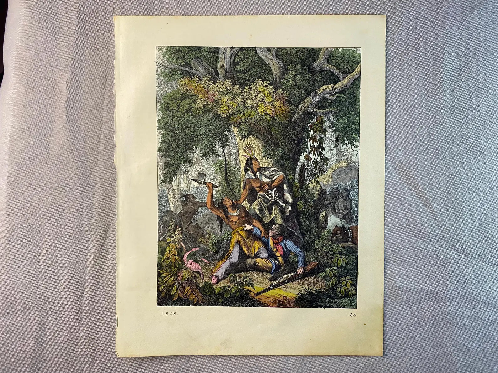 Ein spannendes Sammlerstück für Liebhaber historischer Völkerdarstellungen, Wildnis-Szenen und antiker Druckgrafik.