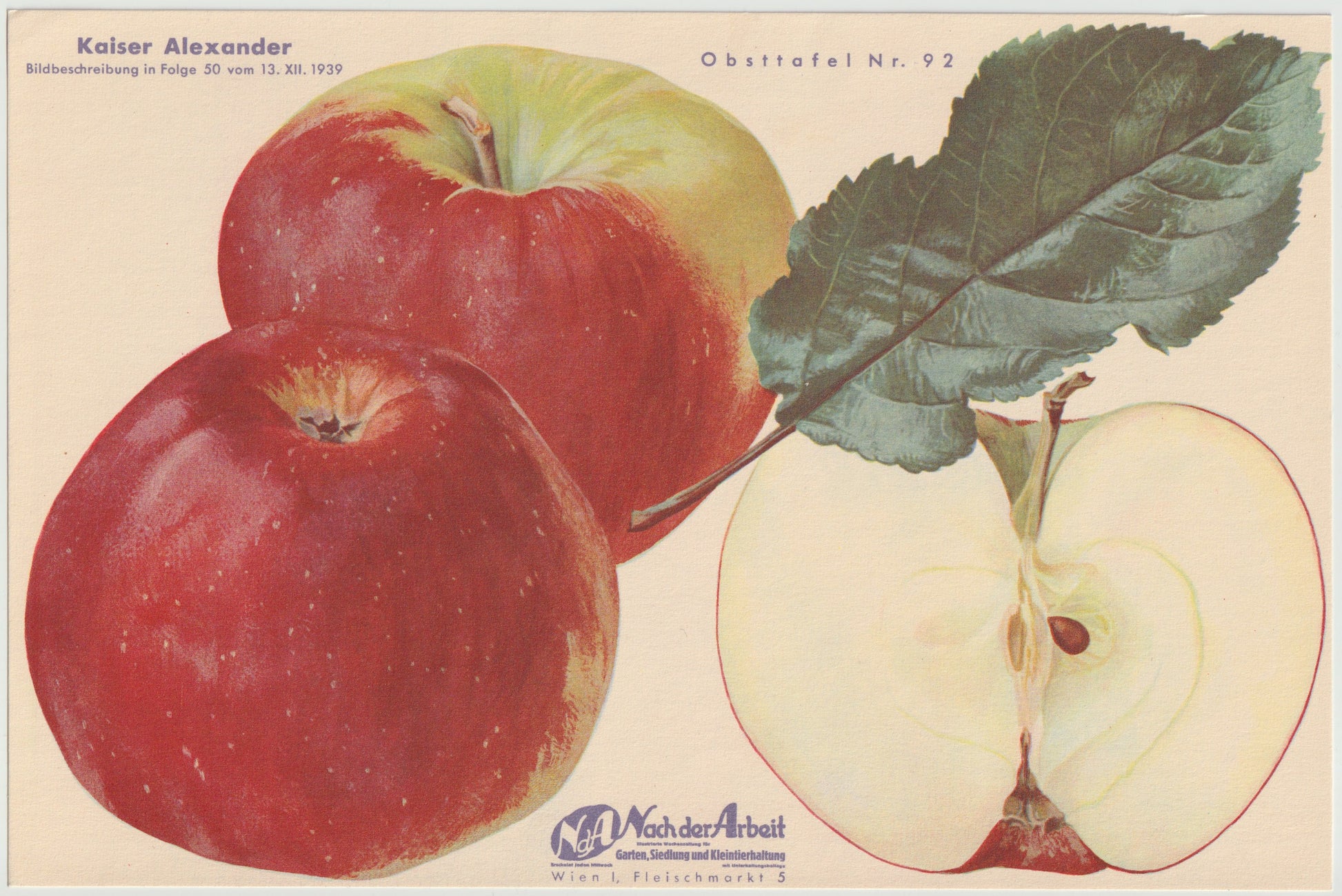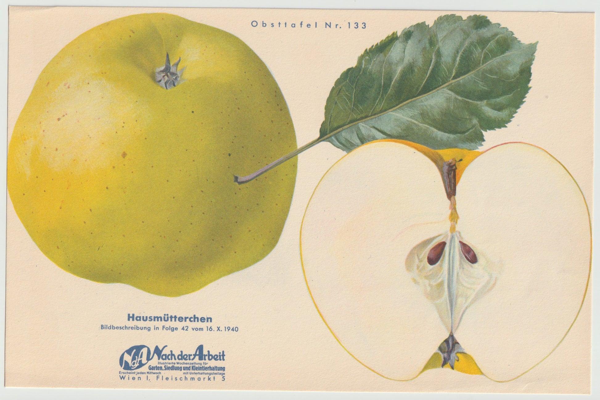 1940 Äfpel Vintage Obsttafel 4er-Set original | Wanddeko Apfel Obst Früchte Küchenapfel