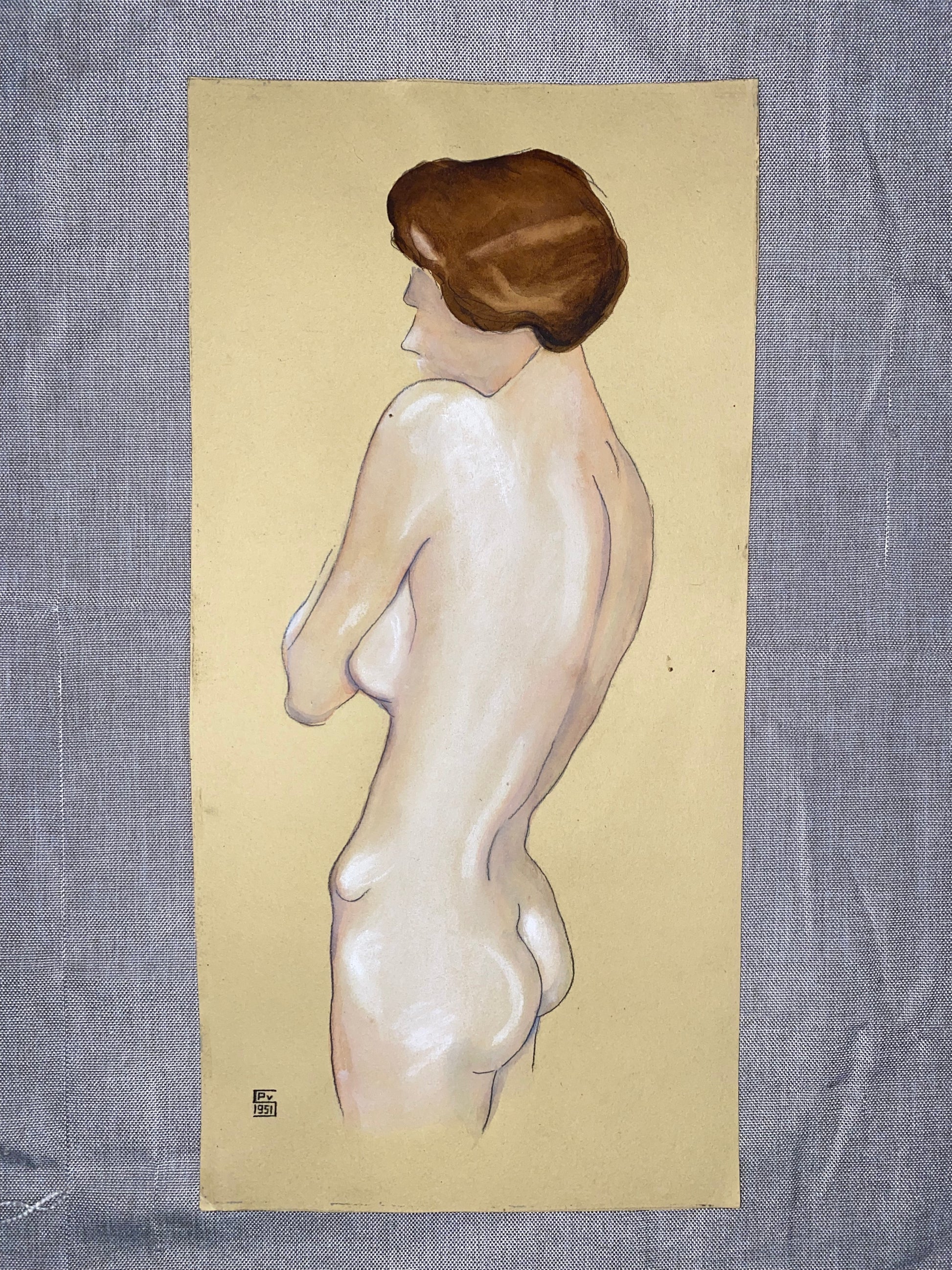 1951 Original Aktzeichnung | Weiblicher Rückenakt | Vintage Aktmalerei | Erotik Kunst