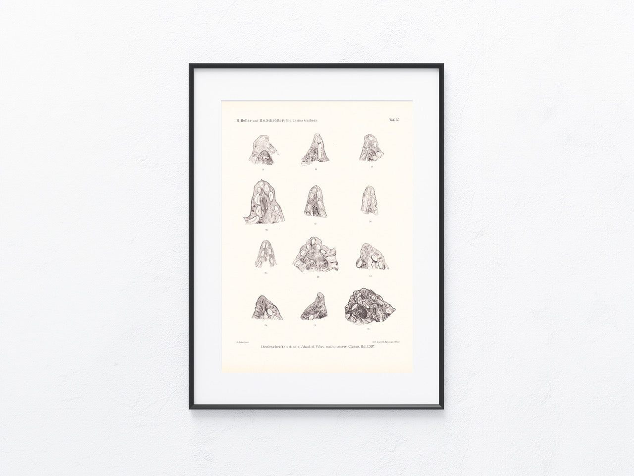 Diese originale Tafel aus den Denkschriften der kaiserlichen Akademie der Wissenschaften ist ein seltenes Stück Geschichte der Österreichisch-Ungarischen Monarchie. Mit einem Alter von über 100 Jahren ist diese Tafel nicht nur ein Zeugnis wissenschaftlicher Erkenntnis ihrer Zeit, sondern auch ein Unikat mit einzigartigem Charakter. Im Laufe der Jahre hat das Papier, je nach Materialart, teils eine schöne elfenbeinfarbene Patina gebildet, die den Charme und die Authentizität dieses Originals unterstreicht. Dies ist kein Nachdruck, sondern ein echtes Sammlerstück für Liebhaber*innen von historischen Dokumenten und ein hübsches Schmuckstück für jedes Zuhause.