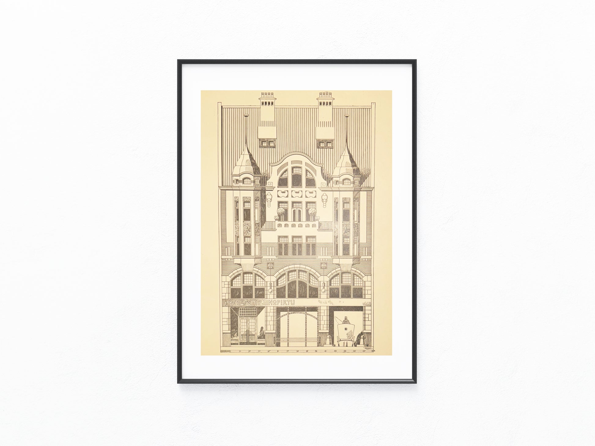 Original Architektur Tafel 1900 Jugendstil Geschäftshaus | Architektur Druck | Baukunst Historisch Vintage