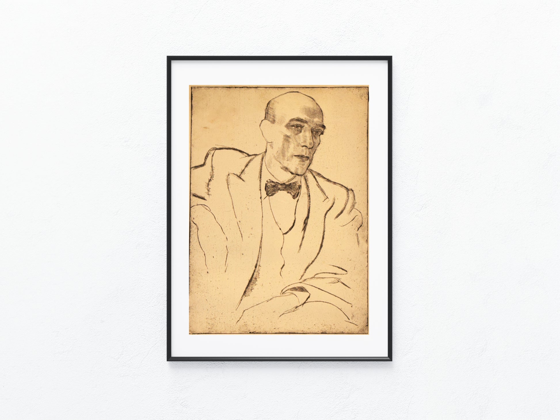 Seltene Radierung mit dem Porträt von Arnold Schönberg (1874–1951), einem der bedeutendsten Komponisten der Wiener Moderne. Das Werk besticht durch seine reduzierte, fast skizzenhafte Linienführung, die den Charakter und die Ausdruckskraft Schönbergs in eindringlicher Weise einfängt. Ein authentisches Zeitzeugnis aus dem kulturellen Umfeld Wiens um 1920, das Musikgeschichte und Bildende Kunst verbindet.