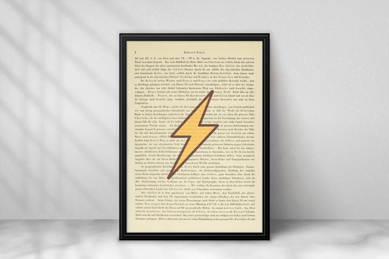 Unsere Drucke sind auf Seiten der Denkschriften der Akademie der Wissenschaften in Wien gefertigt, die über die Jahre eine wunderschöne elfenbeinfarbene Patina entwickelt haben. Mit einem Alter von mindestens 100 Jahren hat jede Seite ihren eigenen einzigartigen Charakter. Jeder Druck erfolgt direkt auf die einzelne Buchseite, sodass kein anderer das gleiche Stück wie du besitzen wird – ein echtes Unikat eben.