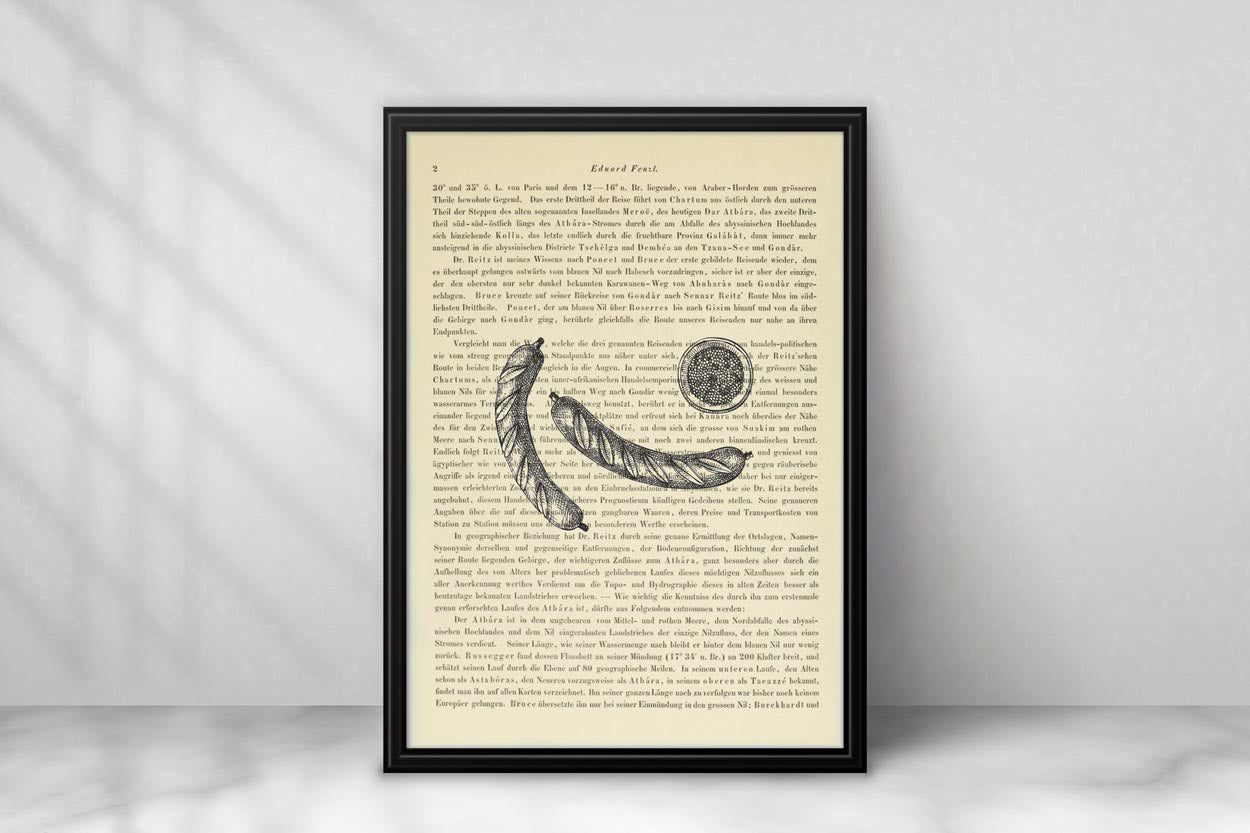 Unsere Drucke sind auf Seiten der Denkschriften der Akademie der Wissenschaften in Wien gefertigt, die über die Jahre eine wunderschöne elfenbeinfarbene Patina entwickelt haben. Mit einem Alter von mindestens 100 Jahren hat jede Seite ihren eigenen einzigartigen Charakter. Jeder Druck erfolgt direkt auf die einzelne Buchseite, sodass kein anderer das gleiche Stück wie du besitzen wird – ein echtes Unikat eben.