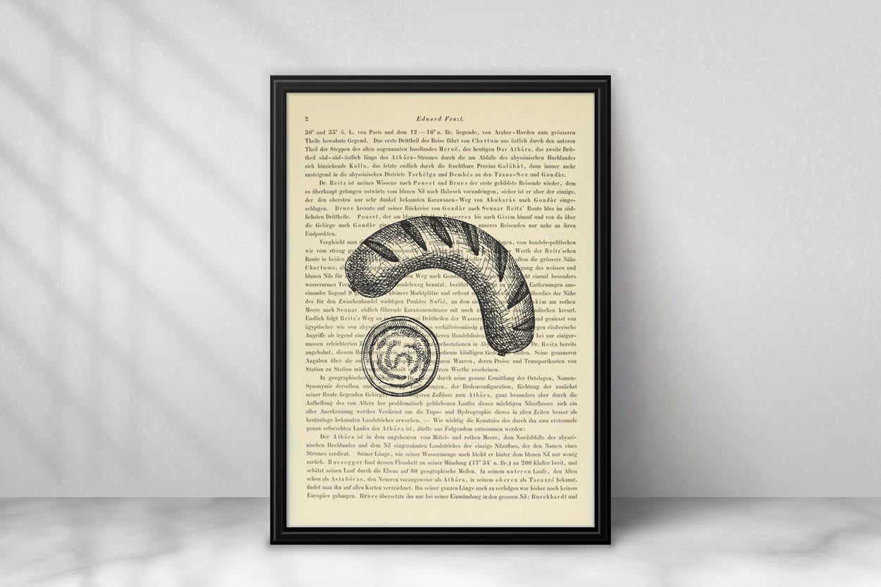 Unsere Drucke sind auf Seiten der Denkschriften der Akademie der Wissenschaften in Wien gefertigt, die über die Jahre eine wunderschöne elfenbeinfarbene Patina entwickelt haben. Mit einem Alter von mindestens 100 Jahren hat jede Seite ihren eigenen einzigartigen Charakter. Jeder Druck erfolgt direkt auf die einzelne Buchseite, sodass kein anderer das gleiche Stück wie du besitzen wird – ein echtes Unikat eben.