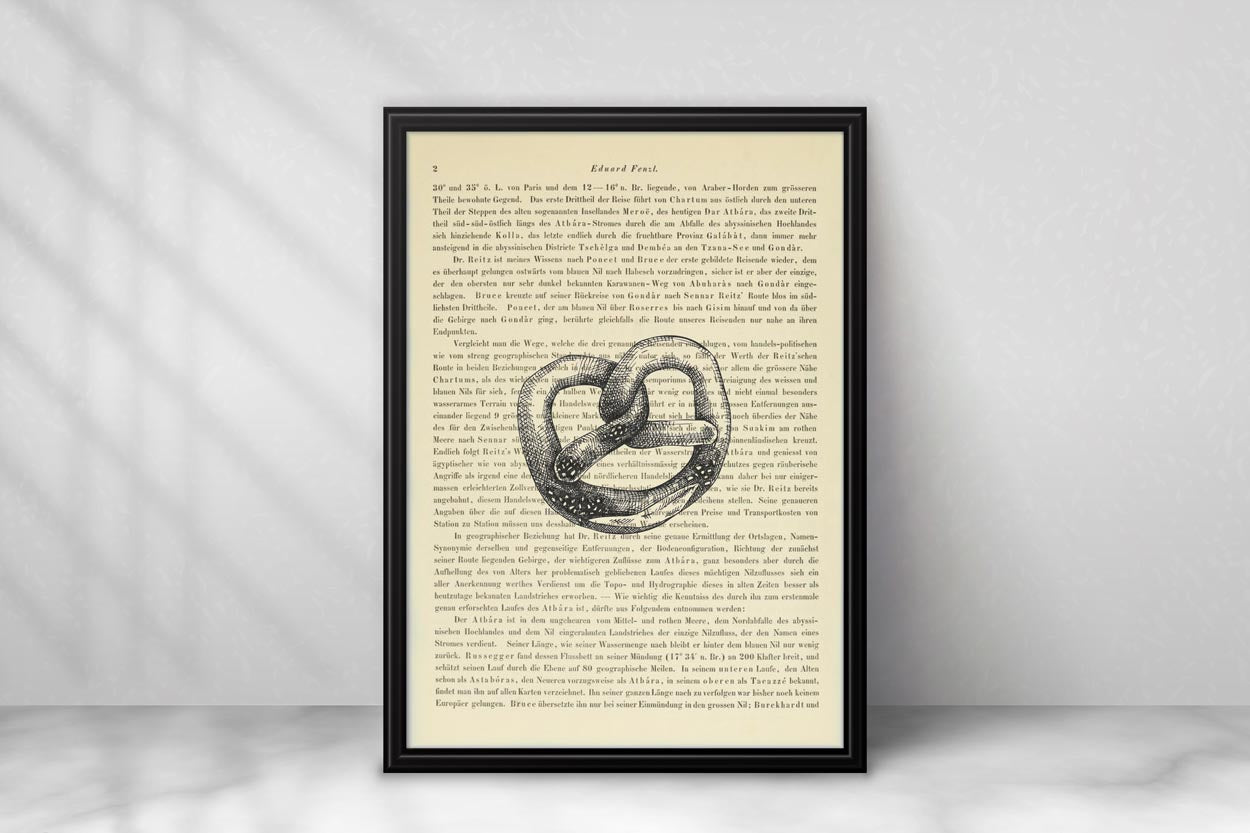 Unsere Drucke sind auf Seiten der Denkschriften der Akademie der Wissenschaften in Wien gefertigt, die über die Jahre eine wunderschöne elfenbeinfarbene Patina entwickelt haben. Mit einem Alter von mindestens 100 Jahren hat jede Seite ihren eigenen einzigartigen Charakter. Jeder Druck erfolgt direkt auf die einzelne Buchseite, sodass kein anderer das gleiche Stück wie du besitzen wird – ein echtes Unikat eben.