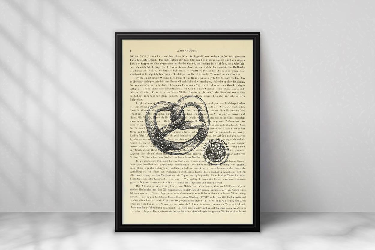 Unsere Drucke sind auf Seiten der Denkschriften der Akademie der Wissenschaften in Wien gefertigt, die über die Jahre eine wunderschöne elfenbeinfarbene Patina entwickelt haben. Mit einem Alter von mindestens 100 Jahren hat jede Seite ihren eigenen einzigartigen Charakter. Jeder Druck erfolgt direkt auf die einzelne Buchseite, sodass kein anderer das gleiche Stück wie du besitzen wird – ein echtes Unikat eben.