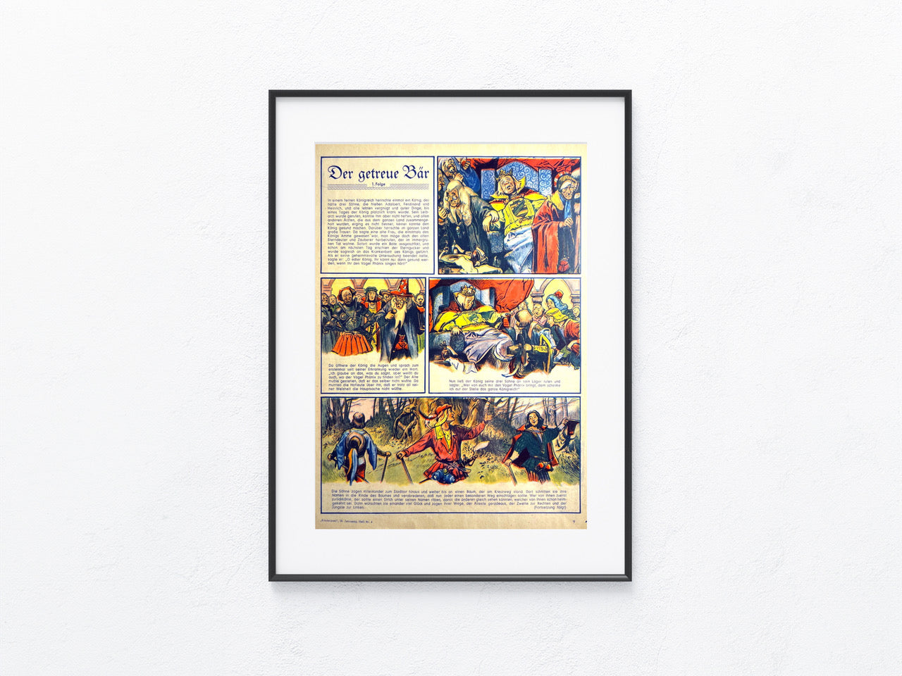 Diese einzigartige Comicseite aus den 1950er Jahren ist ein zeitloses Schmuckstück und eine lebhafte Erinnerung an die goldene Ära der Comics. Die Patina verleiht ihr einen Hauch von Nostalgie und Authentizität, perfekt für alle, die einen Hauch von Retro-Charme in ihrem Zuhause schätzen. Als einzigartiges Original und kein bloßer Nachdruck ist sie ein unverzichtbares Juwel für Comic-Enthusiast*innen und eine stilvolle Bereicherung für jede Sammlung.