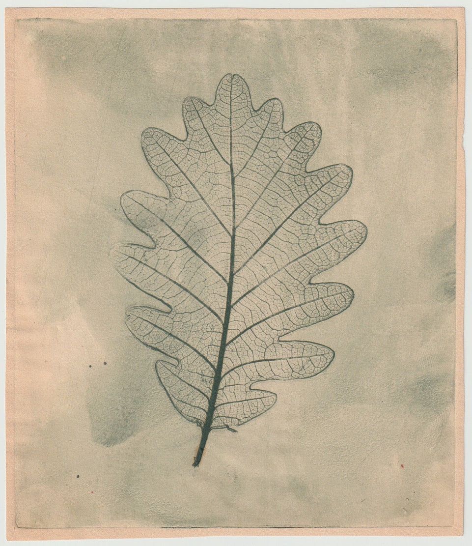 Eichenblatt Naturselbstdruck Graugrün Originaldruck
