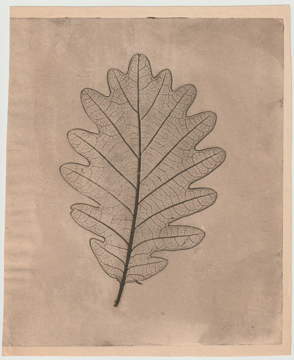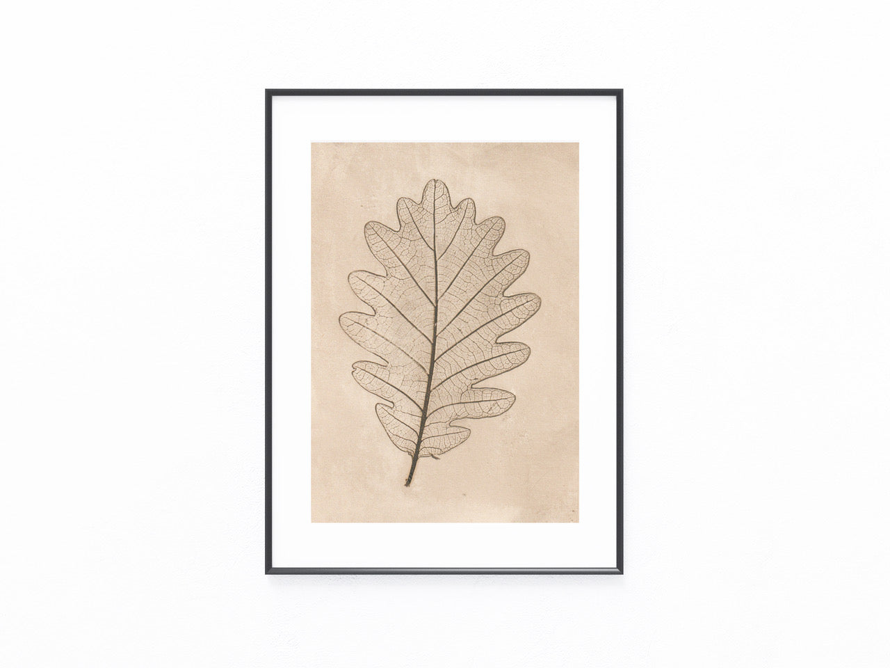 Die charakteristische Form des Eichenblatts, kombiniert mit der feinen Blattzeichnung, macht dieses Exemplar besonders reizvoll – vor allem im Zusammenspiel mit weiteren farbigen Drucken dieser Serie.