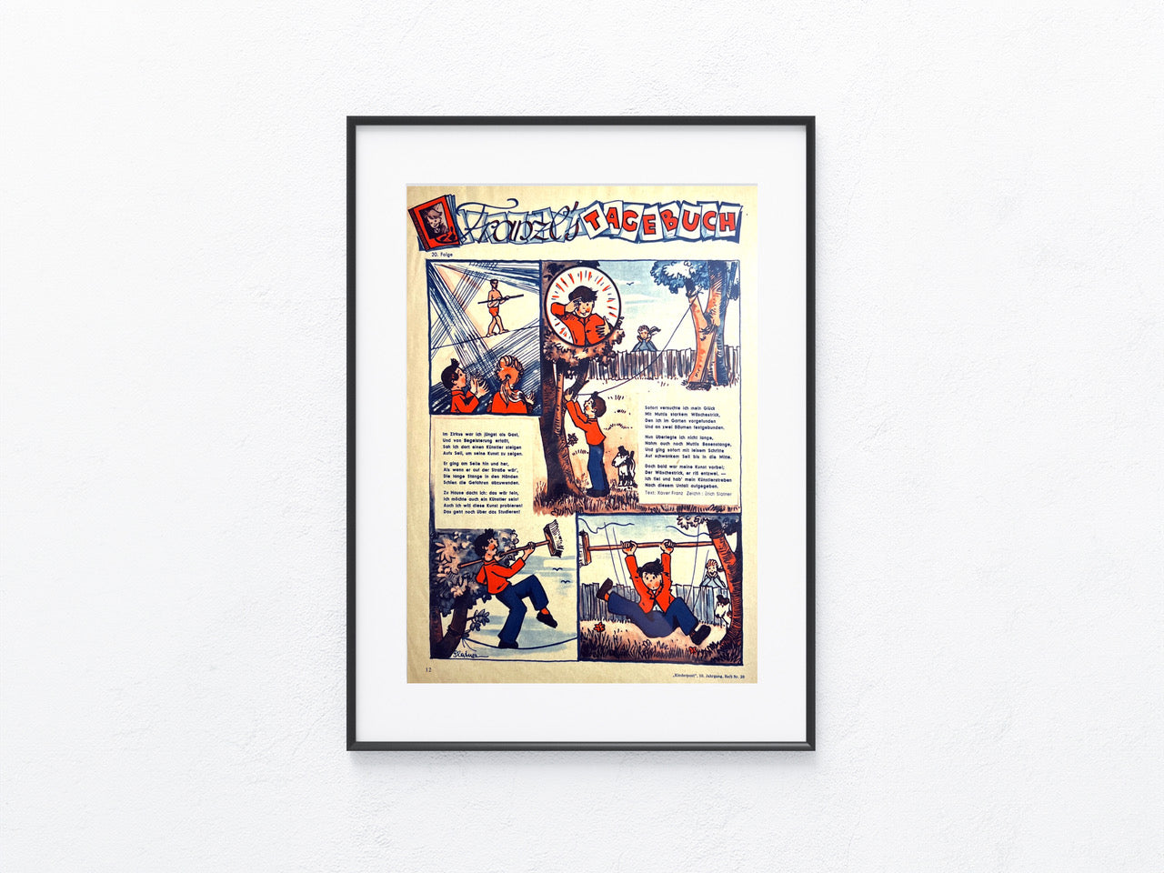 Diese einzigartige Comicseite aus den 1950er Jahren ist ein zeitloses Schmuckstück und eine lebhafte Erinnerung an die goldene Ära der Comics. Die Patina verleiht ihr einen Hauch von Nostalgie und Authentizität, perfekt für alle, die einen Hauch von Retro-Charme in ihrem Zuhause schätzen. Als einzigartiges Original und kein bloßer Nachdruck ist sie ein unverzichtbares Juwel für Comic-Enthusiast*innen und eine stilvolle Bereicherung für jede Sammlung.