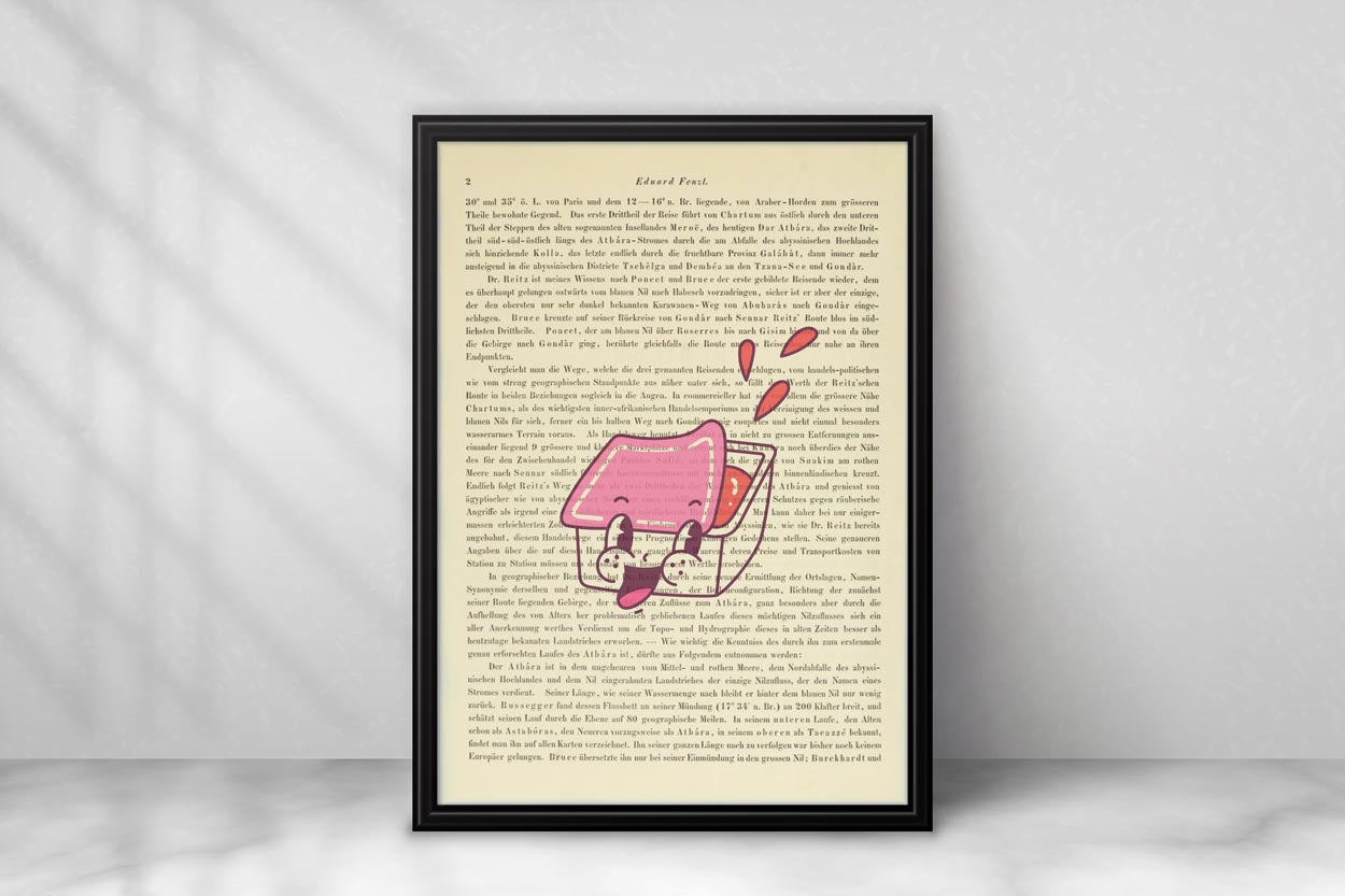 Unsere Drucke sind auf Seiten der Denkschriften der Akademie der Wissenschaften in Wien gefertigt, die über die Jahre eine wunderschöne elfenbeinfarbene Patina entwickelt haben. Mit einem Alter von mindestens 100 Jahren hat jede Seite ihren eigenen einzigartigen Charakter. Jeder Druck erfolgt direkt auf die einzelne Buchseite, sodass kein anderer das gleiche Stück wie du besitzen wird – ein echtes Unikat eben.