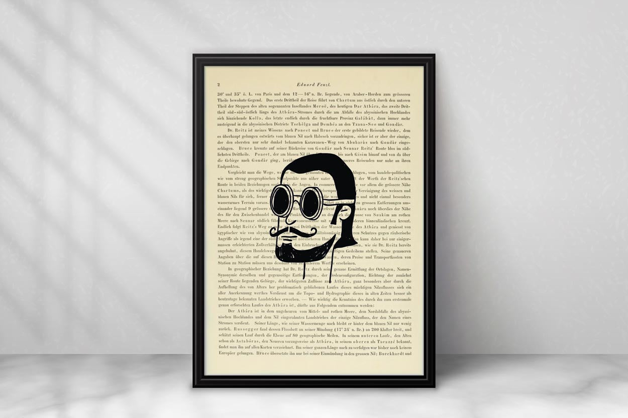 Unsere Drucke sind auf Seiten der Denkschriften der Akademie der Wissenschaften in Wien gefertigt, die über die Jahre eine wunderschöne elfenbeinfarbene Patina entwickelt haben. Mit einem Alter von mindestens 100 Jahren hat jede Seite ihren eigenen einzigartigen Charakter. Jeder Druck erfolgt direkt auf die einzelne Buchseite, sodass kein anderer das gleiche Stück wie du besitzen wird – ein echtes Unikat eben.