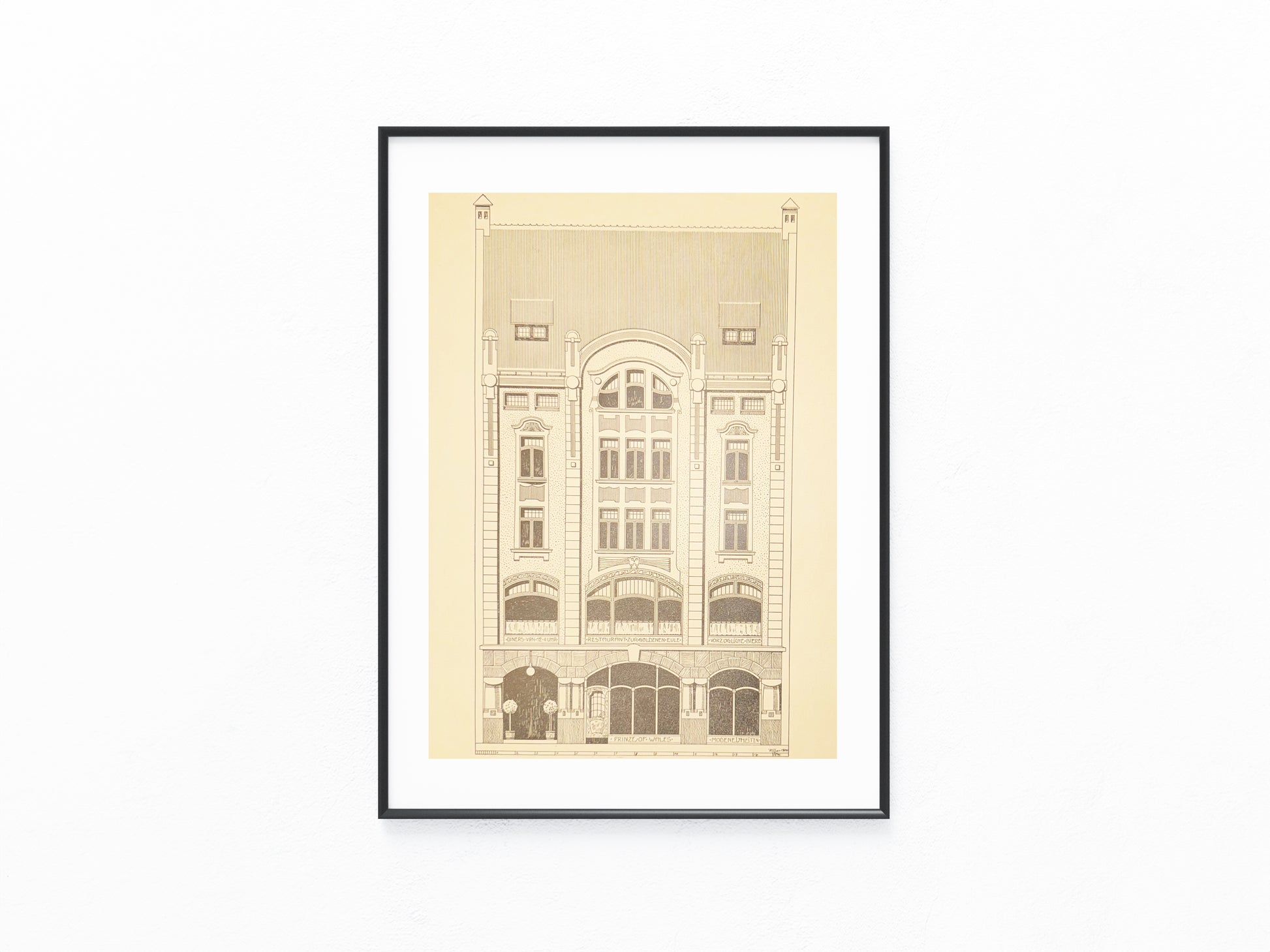 Jugendstil Geschäfts- & Wohnhaus 1900 | Original Baukunst Druck Architektur