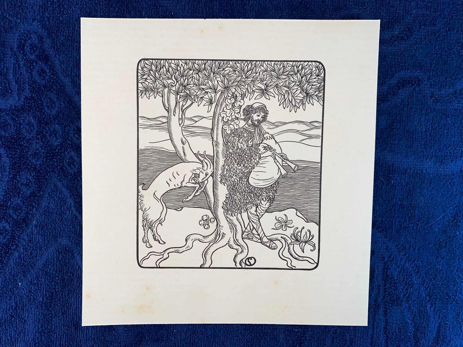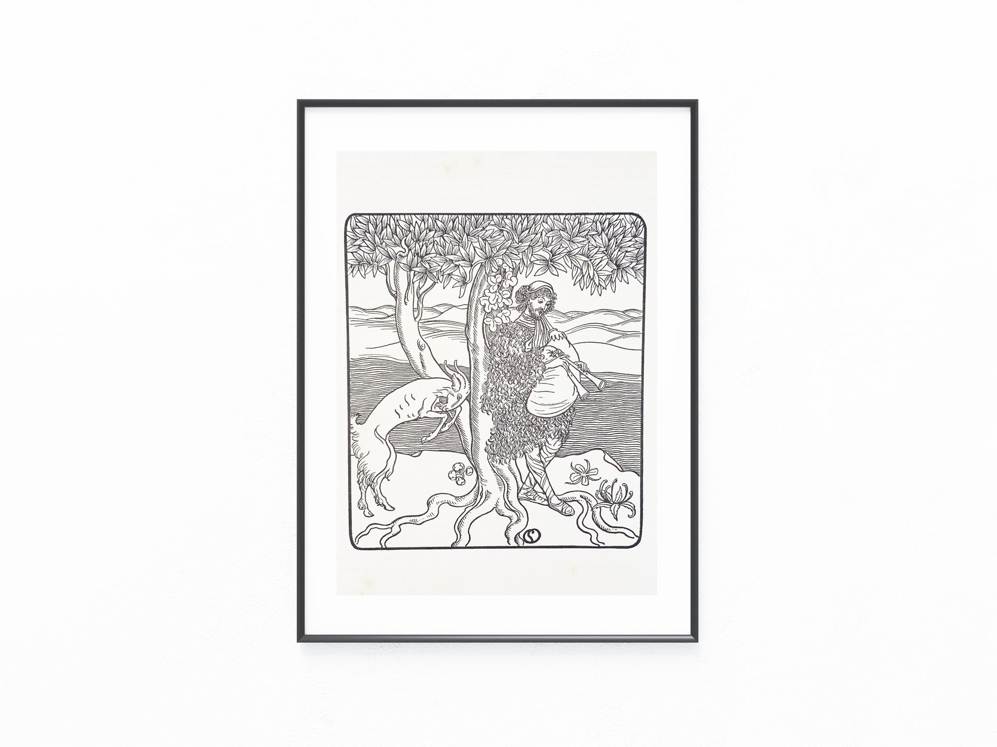 Jugendstildruck Hirte mit Ziege und Flöte um 1900 | Original Grafik Illustration Pan