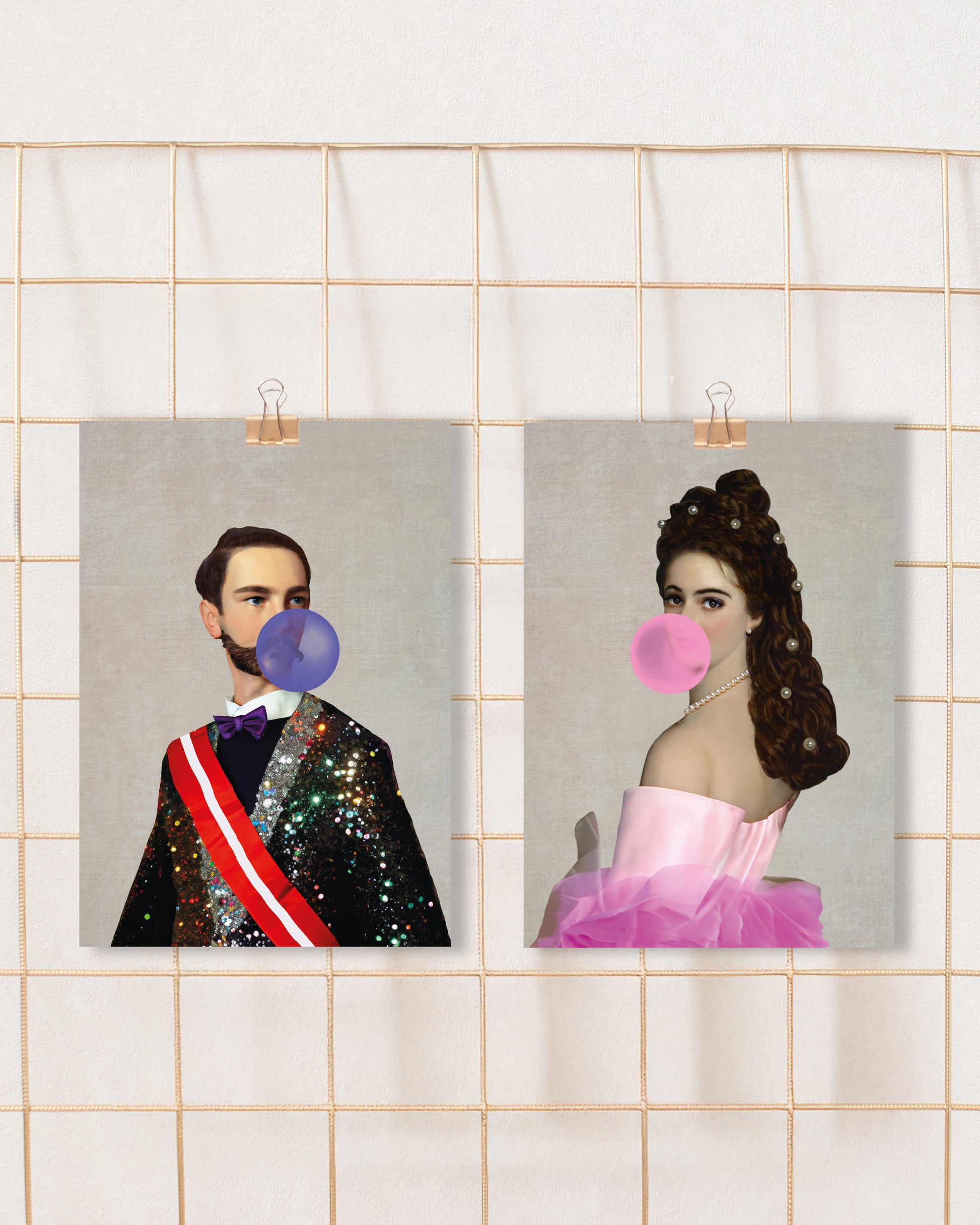 Unsere neue Edition bringt kaiserlichen Charme mit einem modernen Twist an deine Wand – Sissi & Franz in Pastelltönen, verspielt und edel zugleich. Der sanft beige Hintergrund verleiht den Motiven eine moderne Leichtigkeit und lässt Farben, Glanz und Details besonders schön zur Geltung kommen. Fast wie ein Gemälde aus dem Museum, nur viel leichter aufzuhängen ;)