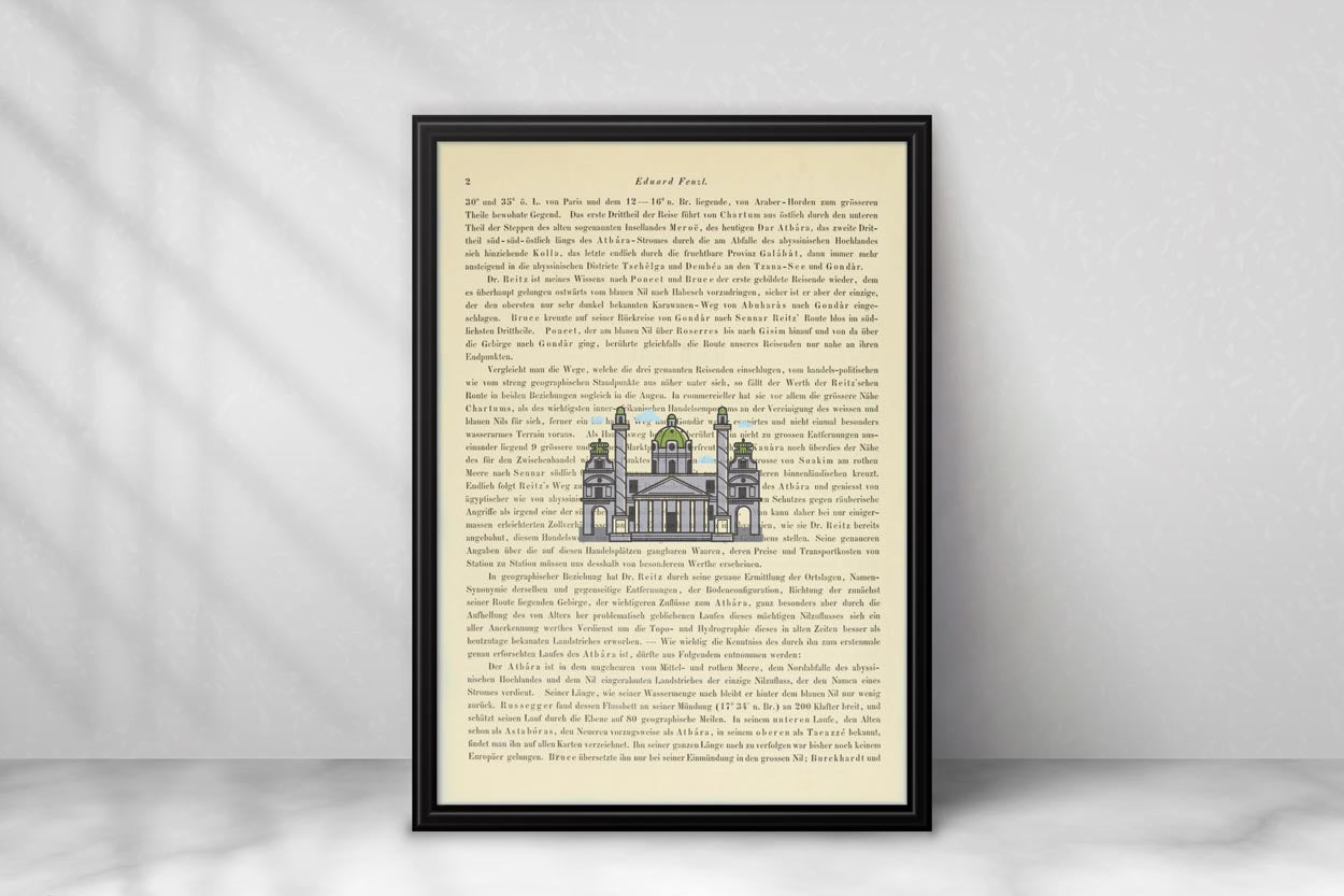 Unsere Drucke sind auf Seiten der Denkschriften der Akademie der Wissenschaften in Wien gefertigt, die über die Jahre eine wunderschöne elfenbeinfarbene Patina entwickelt haben. Mit einem Alter von mindestens 100 Jahren hat jede Seite ihren eigenen einzigartigen Charakter. Jeder Druck erfolgt direkt auf die einzelne Buchseite, sodass kein anderer das gleiche Stück wie du besitzen wird – ein echtes Unikat eben.