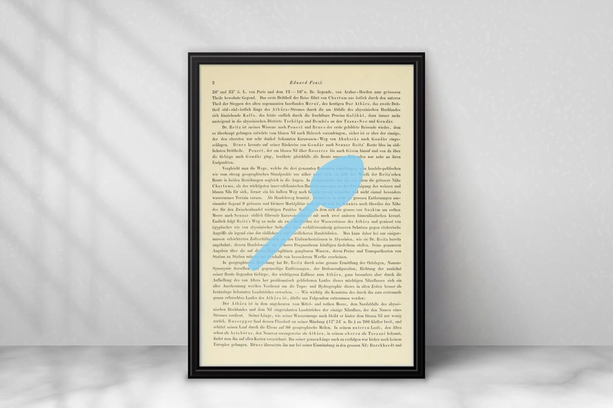 Unsere Drucke sind auf Seiten der Denkschriften der Akademie der Wissenschaften in Wien gefertigt, die über die Jahre eine wunderschöne elfenbeinfarbene Patina entwickelt haben. Mit einem Alter von mindestens 100 Jahren hat jede Seite ihren eigenen einzigartigen Charakter. Jeder Druck erfolgt direkt auf die einzelne Buchseite, sodass kein anderer das gleiche Stück wie du besitzen wird – ein echtes Unikat eben.