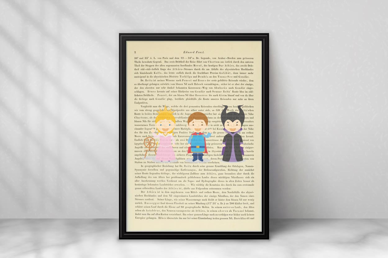 Unsere Drucke sind auf Seiten der Denkschriften der Akademie der Wissenschaften in Wien gefertigt, die über die Jahre eine wunderschöne elfenbeinfarbene Patina entwickelt haben. Mit einem Alter von mindestens 100 Jahren hat jede Seite ihren eigenen einzigartigen Charakter. Jeder Druck erfolgt direkt auf die einzelne Buchseite, sodass kein anderer das gleiche Stück wie du besitzen wird – ein echtes Unikat eben.