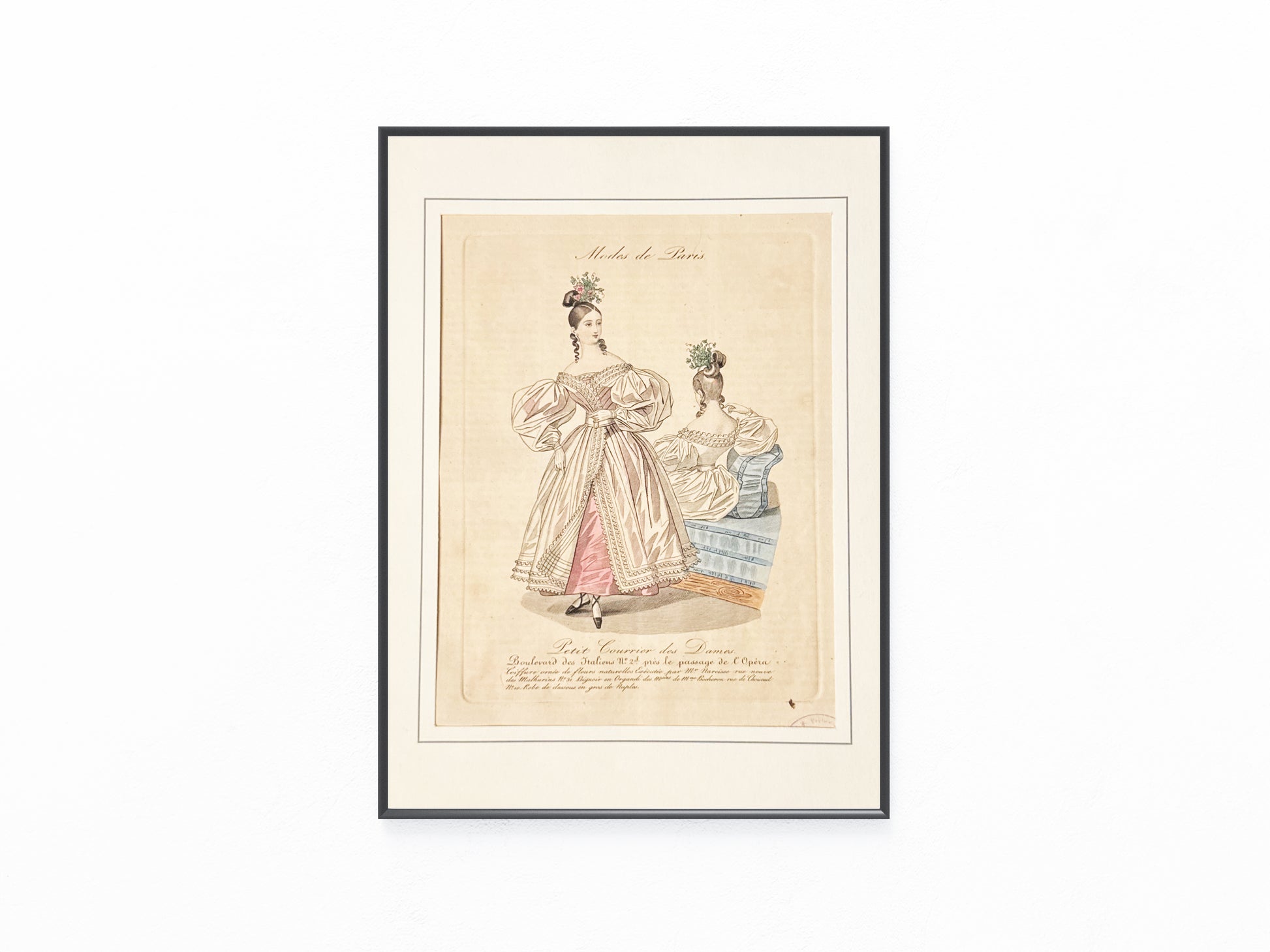 Ein charmantes Modeblatt aus dem Herzen der Pariser Eleganz – ideal für Liebhaber historischer Damenmode und dekorativer Druckgrafik.