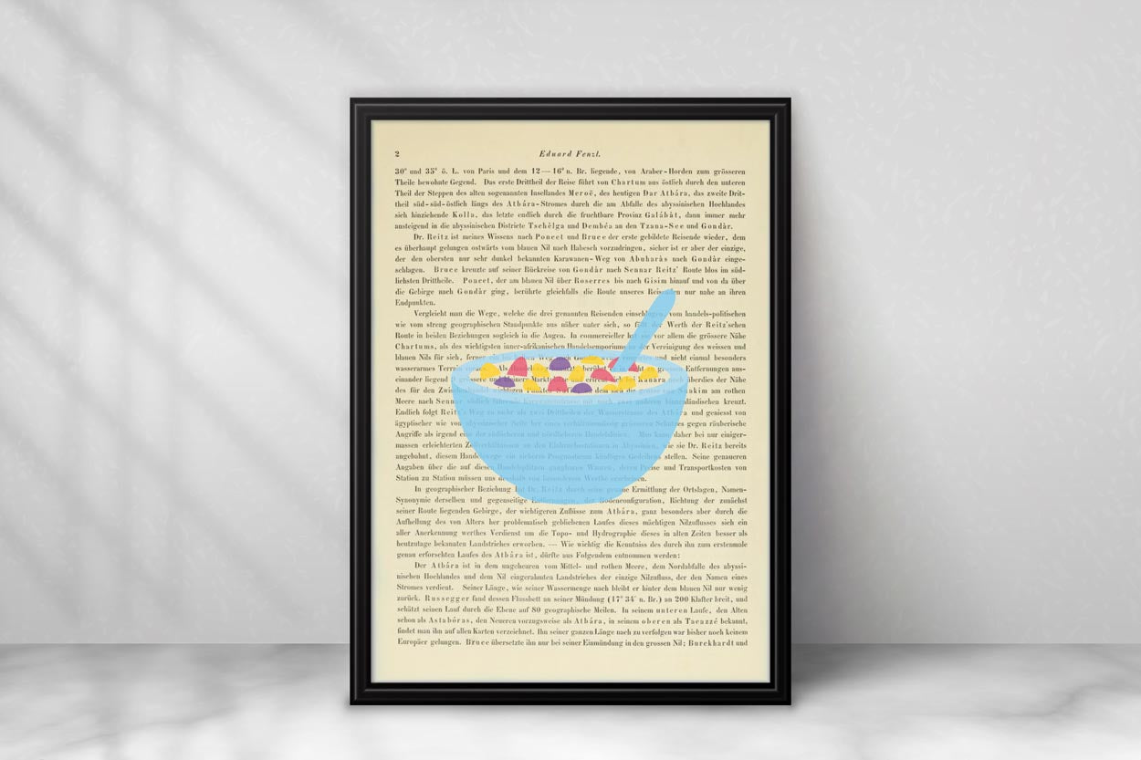 Unsere Drucke sind auf Seiten der Denkschriften der Akademie der Wissenschaften in Wien gefertigt, die über die Jahre eine wunderschöne elfenbeinfarbene Patina entwickelt haben. Mit einem Alter von mindestens 100 Jahren hat jede Seite ihren eigenen einzigartigen Charakter. Jeder Druck erfolgt direkt auf die einzelne Buchseite, sodass kein anderer das gleiche Stück wie du besitzen wird – ein echtes Unikat eben.