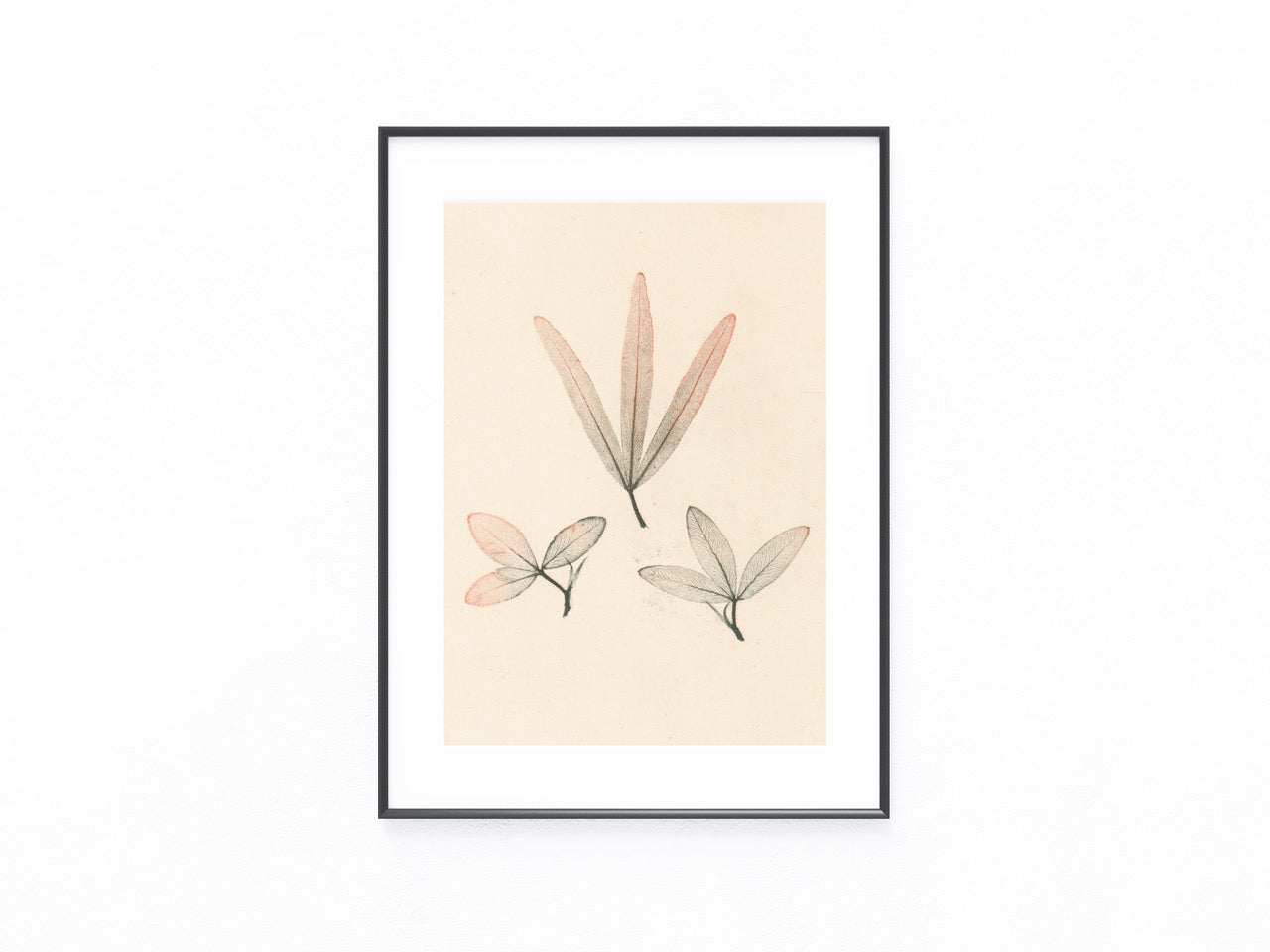 🔍 Motiv: Drei Blätter in verschiedenen Formen und Farbtönen – feiner botanischer Abdruck