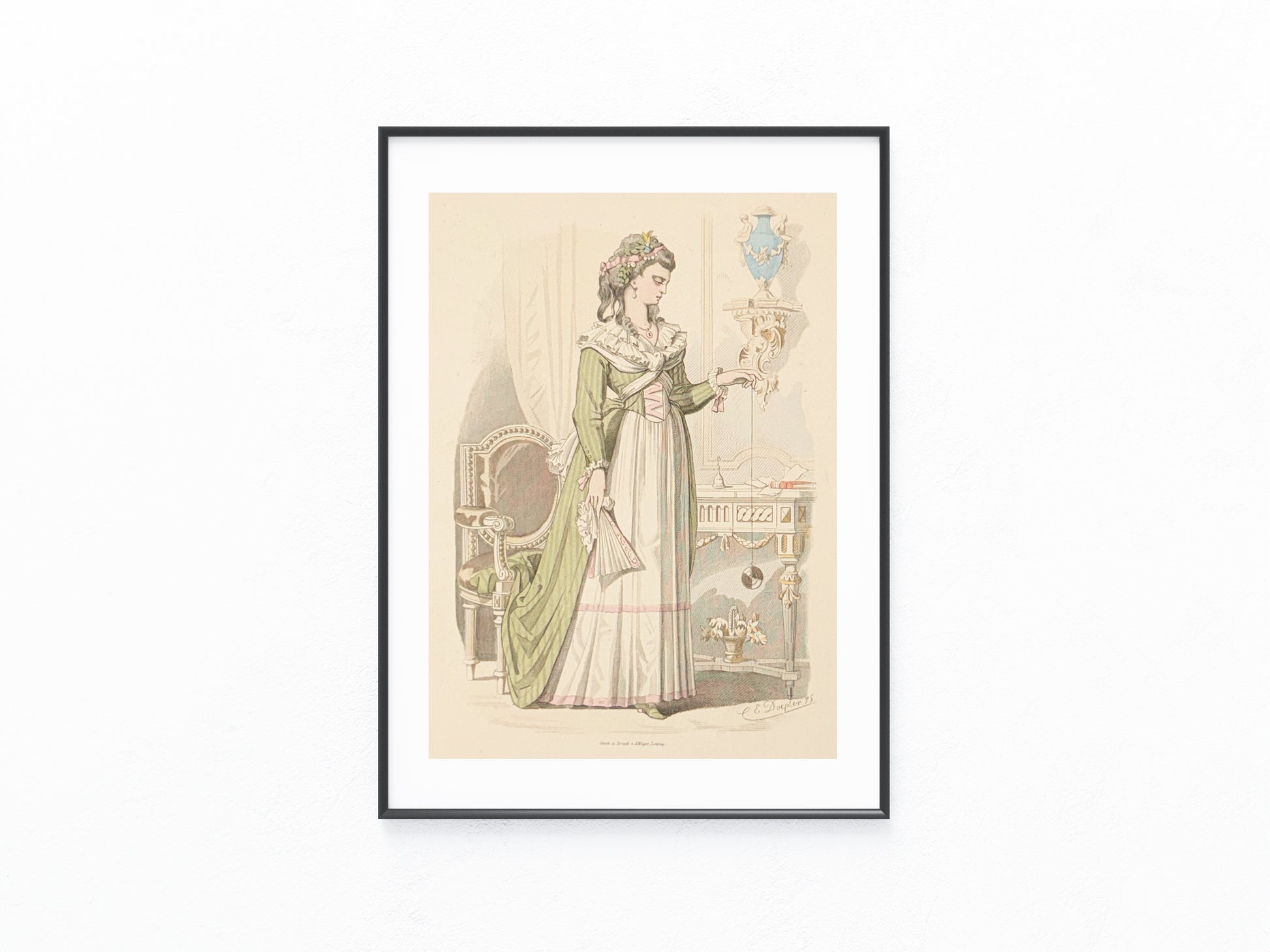 Ein stilvolles Sammlerstück für Liebhaber historischer Mode, Interior-Fans oder als eleganter Wandschmuck im Vintage-Stil.