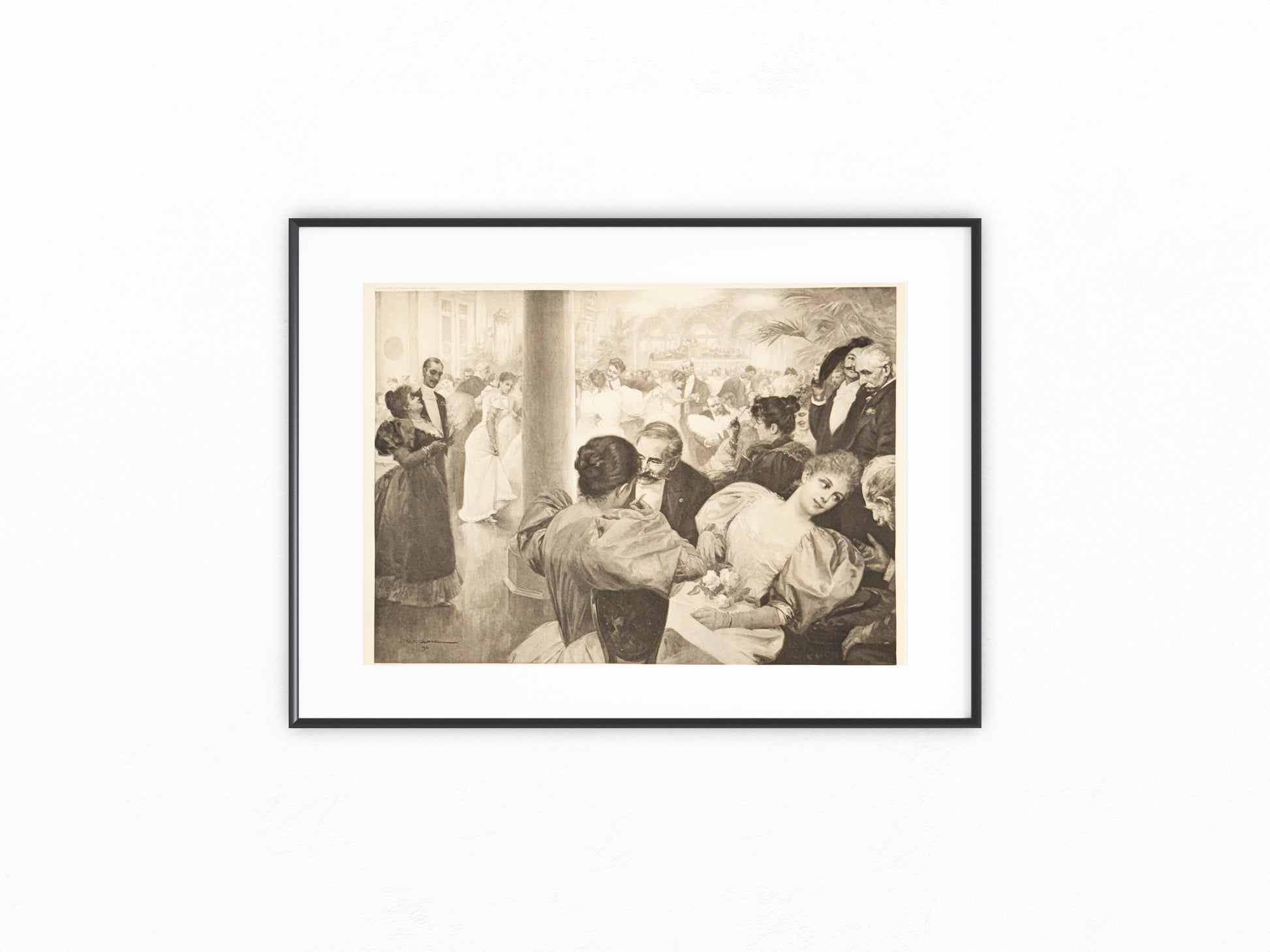 Original Grafik Karlsbad 1890 | Ball Kurhaus Karlovy Vary Gesellschaftsszene