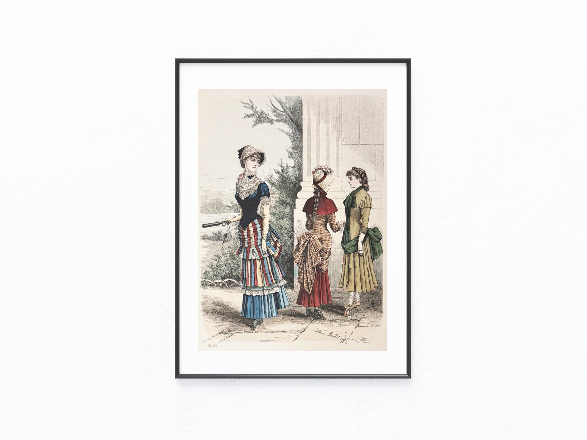 Ein reizvoller Blick in die Modewelt der 1880er – ideal für Liebhaber:innen historischer Kleidung, als Wanddeko oder Sammlerstück.
