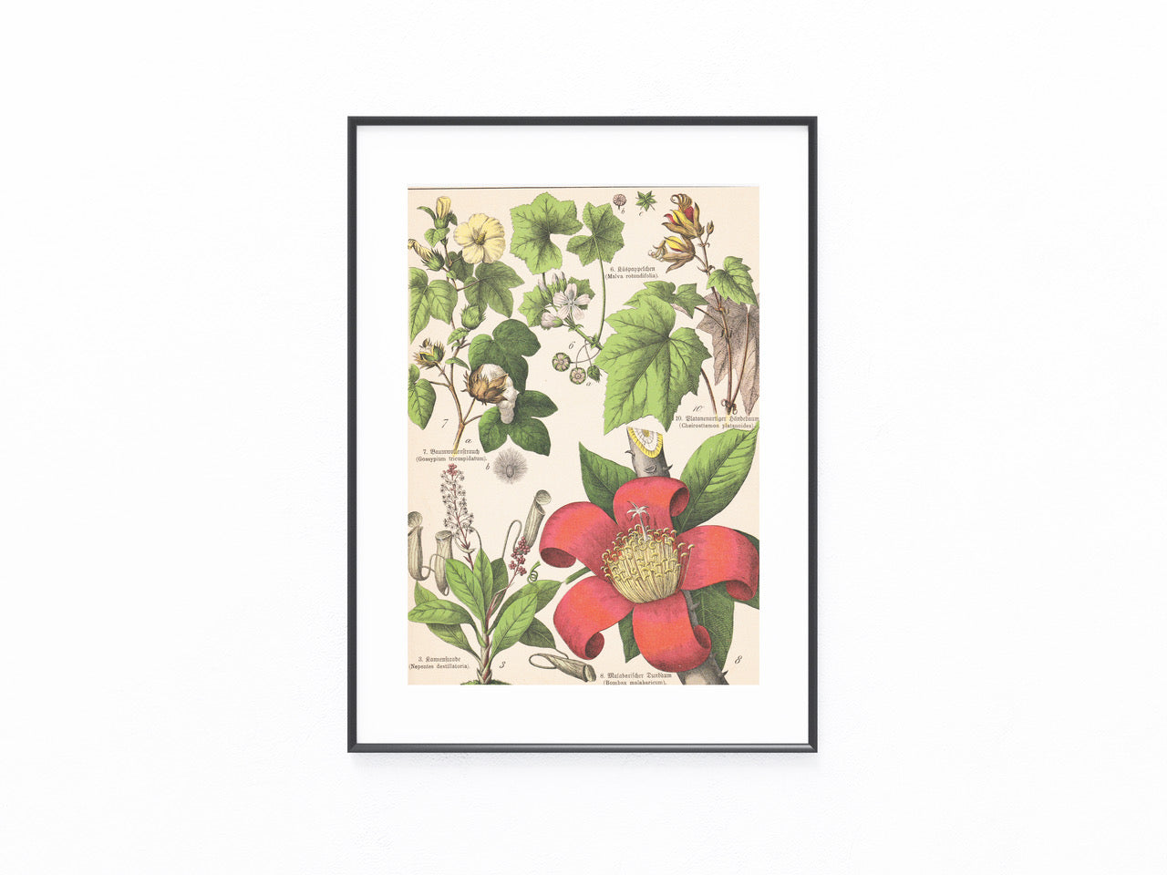 Originaltafel Baumwolle, Kannenpflanze & Malabambaum 1895