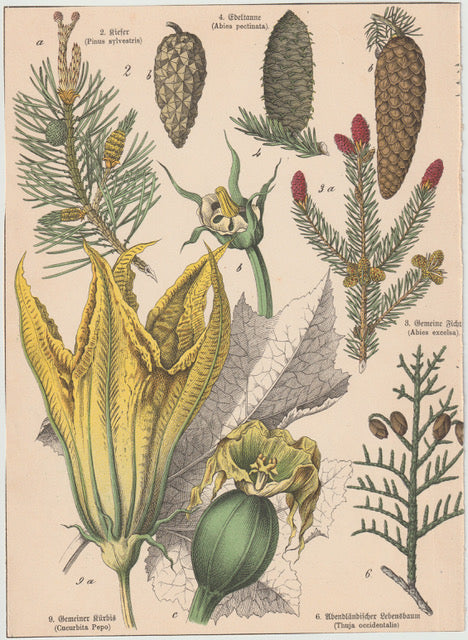 Originaltafel Fichte, Tanne, Kürbis & Lebensbaum 1895