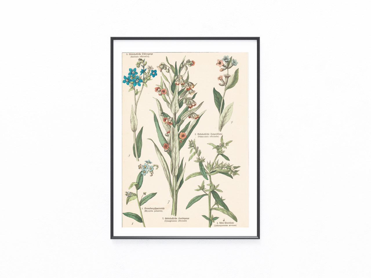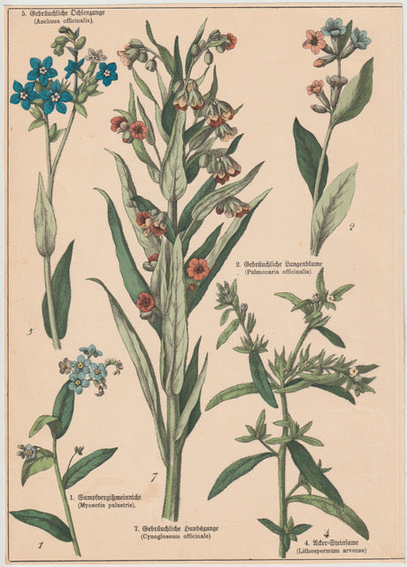 Originaltafel Lungenkraut, Vergissmeinnicht, Ochsenzunge 1895
