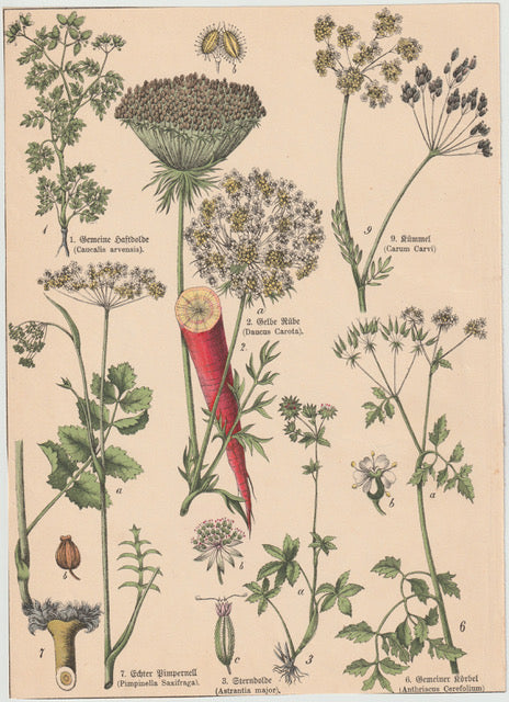 Originaltafel Rübe, Karotte, Kümmel, Sternholde & Pimpernell 1895