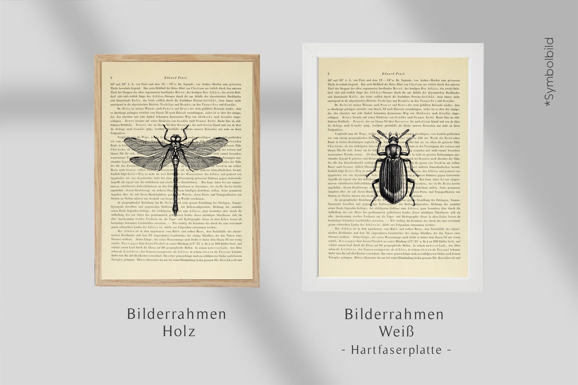 Unsere Drucke sind auf Seiten der Denkschriften der Akademie der Wissenschaften in Wien gefertigt, die über die Jahre eine wunderschöne elfenbeinfarbene Patina entwickelt haben. Mit einem Alter von mindestens 100 Jahren hat jede Seite ihren eigenen einzigartigen Charakter. Jeder Druck erfolgt direkt auf die einzelne Buchseite, sodass kein anderer das gleiche Stück wie du besitzen wird – ein echtes Unikat eben.