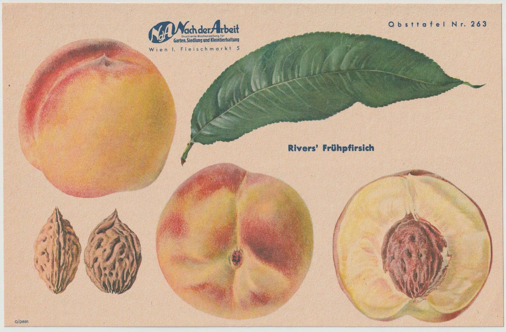 Pfirsiche Obsttafeln 4er-Set Vintage 1940er original | Frühpfirsich Triumphpfirsich