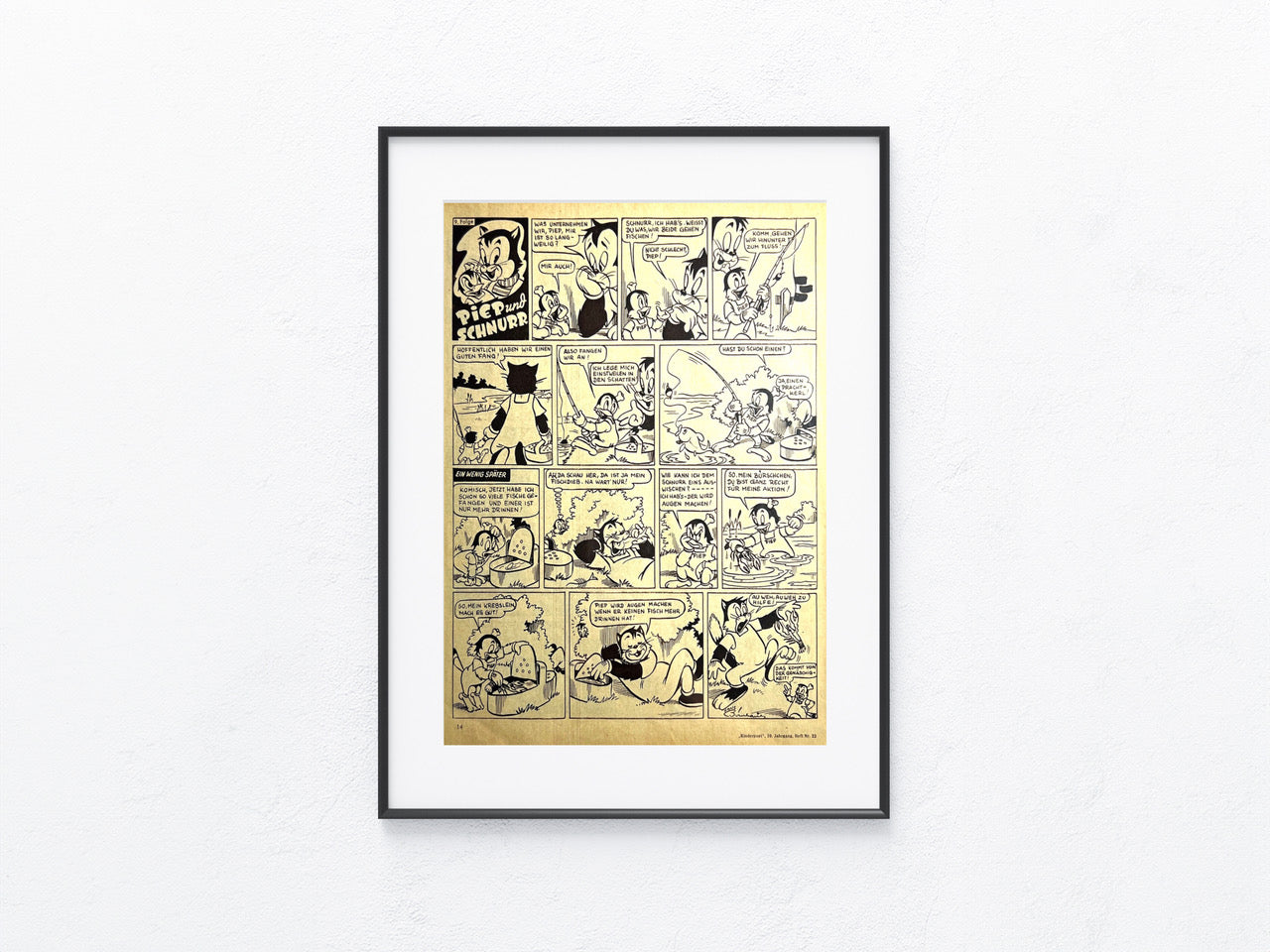 Diese einzigartige Comicseite aus den 1950er Jahren ist ein zeitloses Schmuckstück und eine lebhafte Erinnerung an die goldene Ära der Comics. Die Patina verleiht ihr einen Hauch von Nostalgie und Authentizität, perfekt für alle, die einen Hauch von Retro-Charme in ihrem Zuhause schätzen. Als einzigartiges Original und kein bloßer Nachdruck ist sie ein unverzichtbares Juwel für Comic-Enthusiast*innen und eine stilvolle Bereicherung für jede Sammlung.