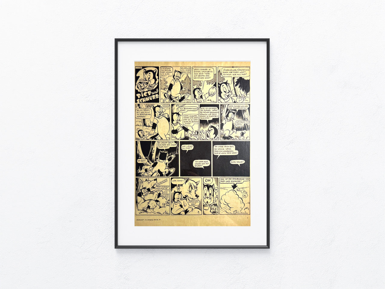 Diese einzigartige Comicseite aus den 1950er Jahren ist ein zeitloses Schmuckstück und eine lebhafte Erinnerung an die goldene Ära der Comics. Die Patina verleiht ihr einen Hauch von Nostalgie und Authentizität, perfekt für alle, die einen Hauch von Retro-Charme in ihrem Zuhause schätzen. Als einzigartiges Original und kein bloßer Nachdruck ist sie ein unverzichtbares Juwel für Comic-Enthusiast*innen und eine stilvolle Bereicherung für jede Sammlung.
