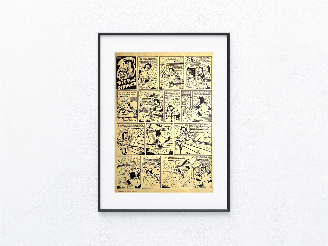 Diese einzigartige Comicseite aus den 1950er Jahren ist ein zeitloses Schmuckstück und eine lebhafte Erinnerung an die goldene Ära der Comics. Die Patina verleiht ihr einen Hauch von Nostalgie und Authentizität, perfekt für alle, die einen Hauch von Retro-Charme in ihrem Zuhause schätzen. Als einzigartiges Original und kein bloßer Nachdruck ist sie ein unverzichtbares Juwel für Comic-Enthusiast*innen und eine stilvolle Bereicherung für jede Sammlung.