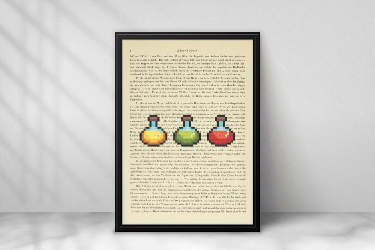 Unsere Drucke sind auf Seiten der Denkschriften der Akademie der Wissenschaften in Wien gefertigt, die über die Jahre eine wunderschöne elfenbeinfarbene Patina entwickelt haben. Mit einem Alter von mindestens 100 Jahren hat jede Seite ihren eigenen einzigartigen Charakter. Jeder Druck erfolgt direkt auf die einzelne Buchseite, sodass kein anderer das gleiche Stück wie du besitzen wird – ein echtes Unikat eben.
