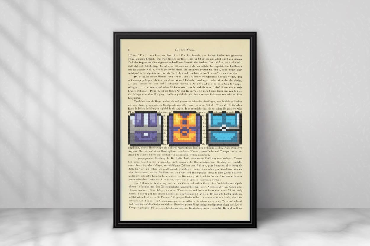 Unsere Drucke sind auf Seiten der Denkschriften der Akademie der Wissenschaften in Wien gefertigt, die über die Jahre eine wunderschöne elfenbeinfarbene Patina entwickelt haben. Mit einem Alter von mindestens 100 Jahren hat jede Seite ihren eigenen einzigartigen Charakter. Jeder Druck erfolgt direkt auf die einzelne Buchseite, sodass kein anderer das gleiche Stück wie du besitzen wird – ein echtes Unikat eben.
