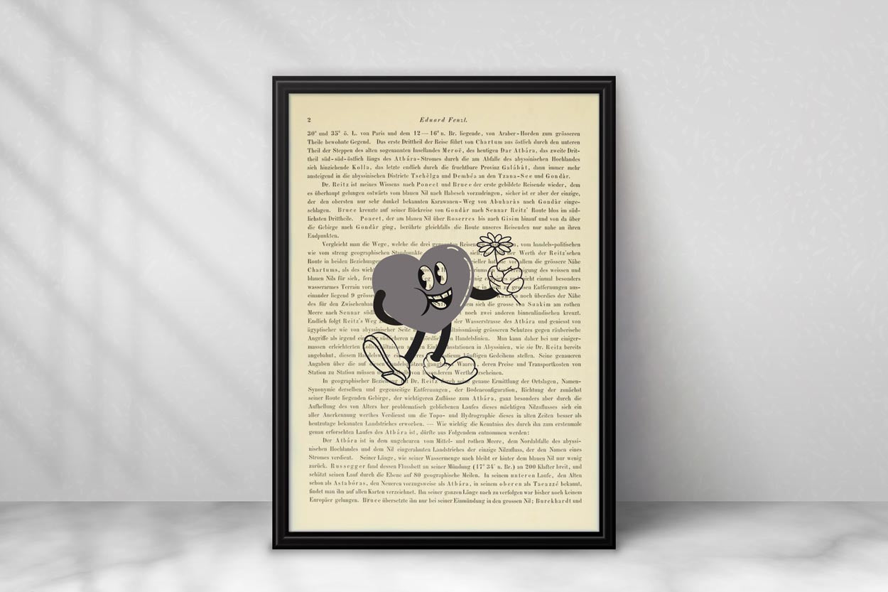Unsere Drucke sind auf Seiten der Denkschriften der Akademie der Wissenschaften in Wien gefertigt, die über die Jahre eine wunderschöne elfenbeinfarbene Patina entwickelt haben. Mit einem Alter von mindestens 100 Jahren hat jede Seite ihren eigenen einzigartigen Charakter. Jeder Druck erfolgt direkt auf die einzelne Buchseite, sodass kein anderer das gleiche Stück wie du besitzen wird – ein echtes Unikat eben.