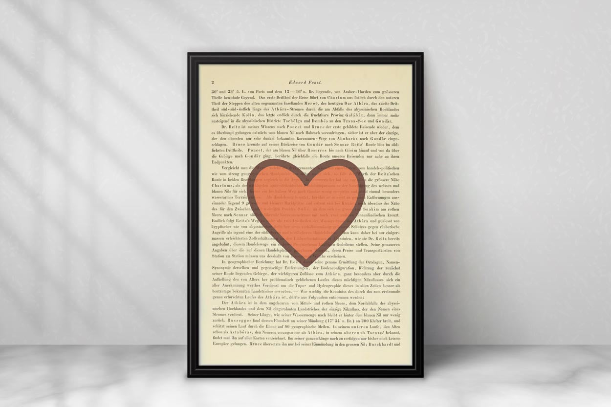 Unsere Drucke sind auf Seiten der Denkschriften der Akademie der Wissenschaften in Wien gefertigt, die über die Jahre eine wunderschöne elfenbeinfarbene Patina entwickelt haben. Mit einem Alter von mindestens 100 Jahren hat jede Seite ihren eigenen einzigartigen Charakter. Jeder Druck erfolgt direkt auf die einzelne Buchseite, sodass kein anderer das gleiche Stück wie du besitzen wird – ein echtes Unikat eben.
