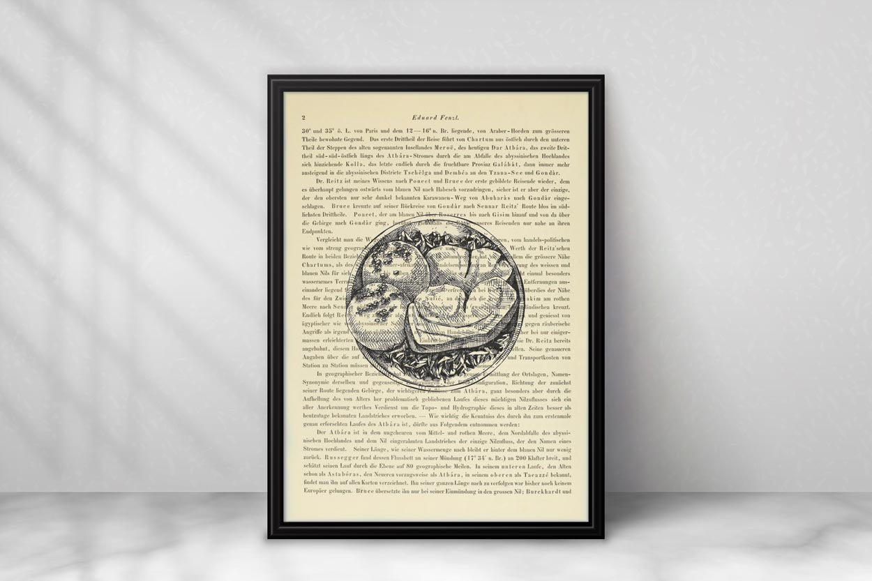Unsere Drucke sind auf Seiten der Denkschriften der Akademie der Wissenschaften in Wien gefertigt, die über die Jahre eine wunderschöne elfenbeinfarbene Patina entwickelt haben. Mit einem Alter von mindestens 100 Jahren hat jede Seite ihren eigenen einzigartigen Charakter. Jeder Druck erfolgt direkt auf die einzelne Buchseite, sodass kein anderer das gleiche Stück wie du besitzen wird – ein echtes Unikat eben.