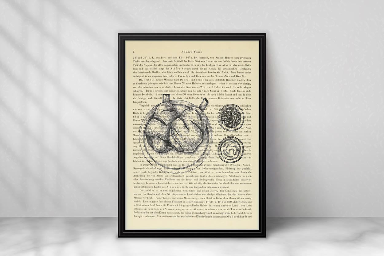 Unsere Drucke sind auf Seiten der Denkschriften der Akademie der Wissenschaften in Wien gefertigt, die über die Jahre eine wunderschöne elfenbeinfarbene Patina entwickelt haben. Mit einem Alter von mindestens 100 Jahren hat jede Seite ihren eigenen einzigartigen Charakter. Jeder Druck erfolgt direkt auf die einzelne Buchseite, sodass kein anderer das gleiche Stück wie du besitzen wird – ein echtes Unikat eben.