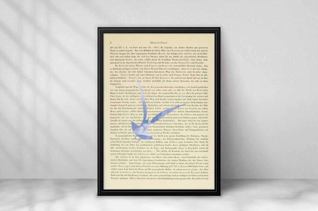 Unsere Drucke sind auf Seiten der Denkschriften der Akademie der Wissenschaften in Wien gefertigt, die über die Jahre eine wunderschöne elfenbeinfarbene Patina entwickelt haben. Mit einem Alter von mindestens 100 Jahren hat jede Seite ihren eigenen einzigartigen Charakter. Jeder Druck erfolgt direkt auf die einzelne Buchseite, sodass kein anderer das gleiche Stück wie du besitzen wird – ein echtes Unikat eben.