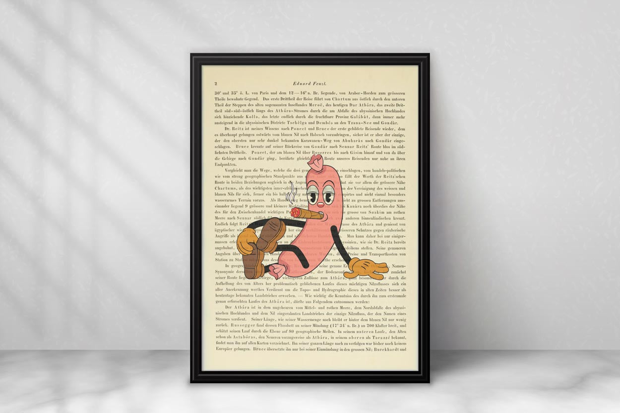 Unsere Drucke sind auf Seiten der Denkschriften der Akademie der Wissenschaften in Wien gefertigt, die über die Jahre eine wunderschöne elfenbeinfarbene Patina entwickelt haben. Mit einem Alter von mindestens 100 Jahren hat jede Seite ihren eigenen einzigartigen Charakter. Jeder Druck erfolgt direkt auf die einzelne Buchseite, sodass kein anderer das gleiche Stück wie du besitzen wird – ein echtes Unikat eben.